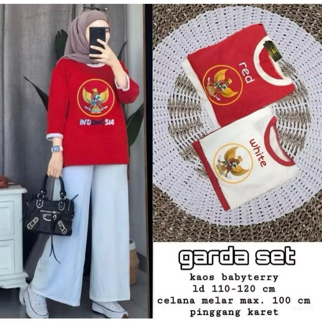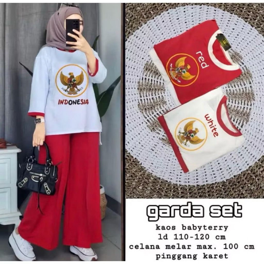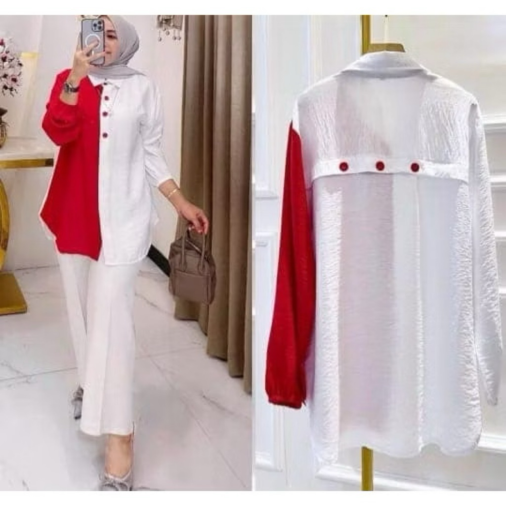 SETELAN WANITA MERAH PUTIH DZUMBA CRINKLE AIRFLOW // SETELAN MERAH PUTIH WANITA LD 110 CM // BAJU SERAGAMAN KEMERDEKAAN