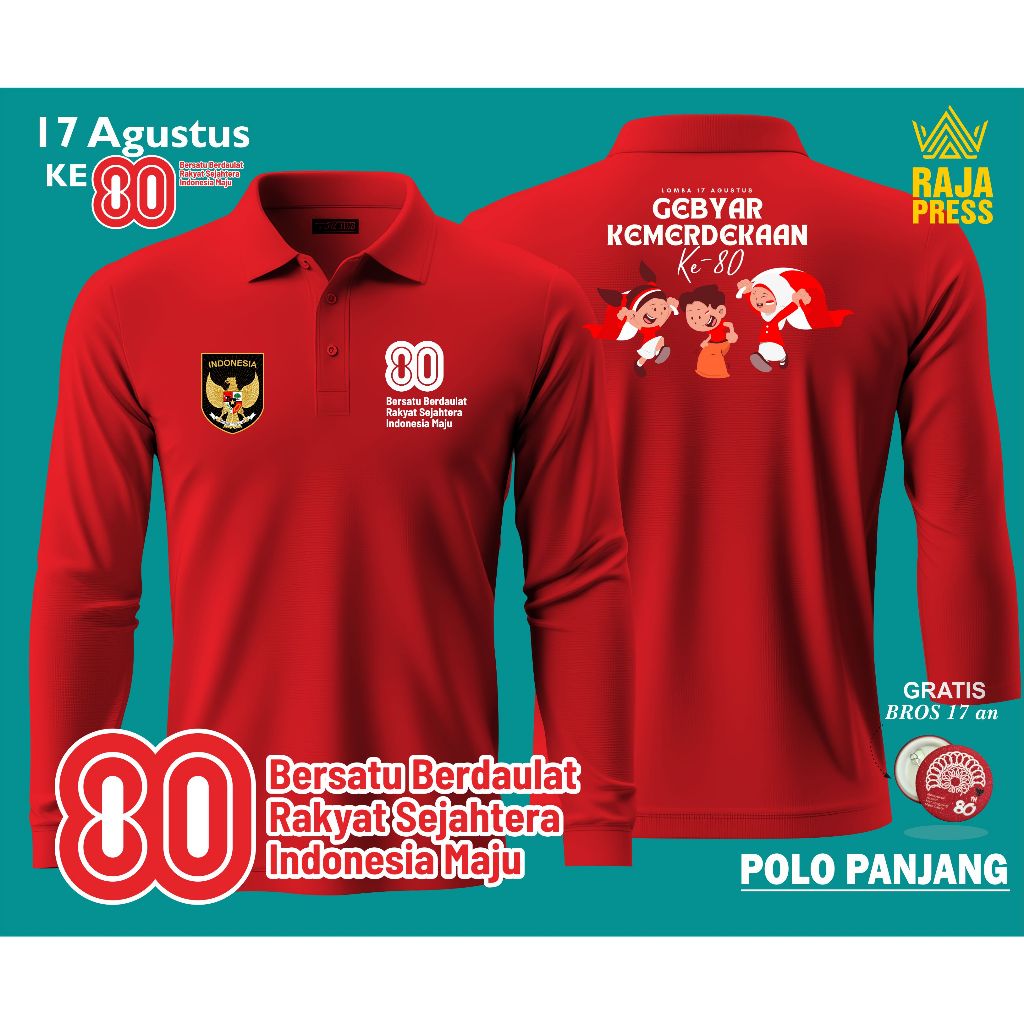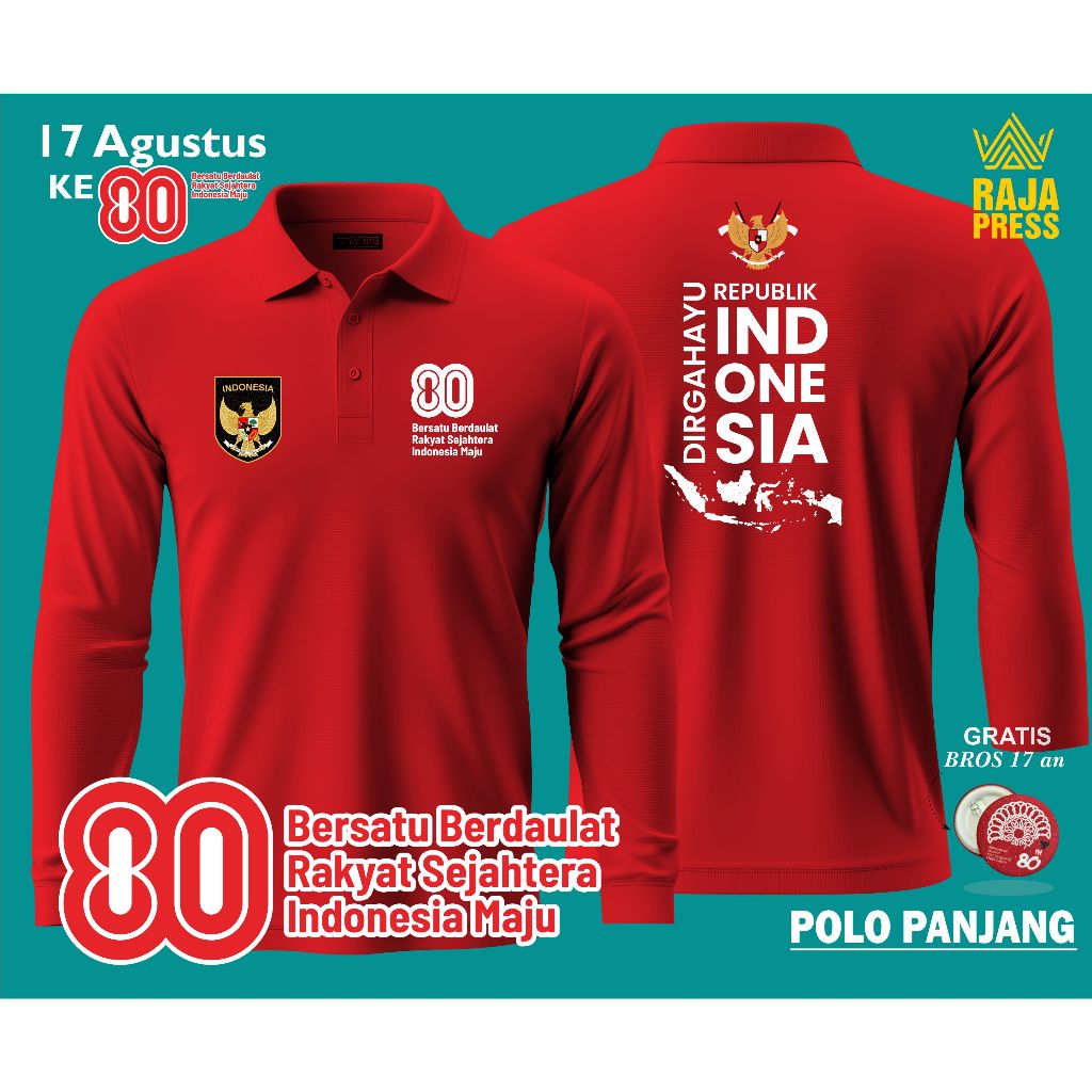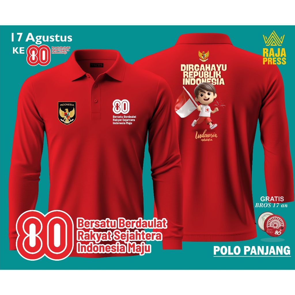 BAJU POLO TSHIRT 17 AGUSTUS HUT REPUBLIK INDONESIA KE-80 2025 DESAIN MERAH PUTIH DEWASA DAN ANAK