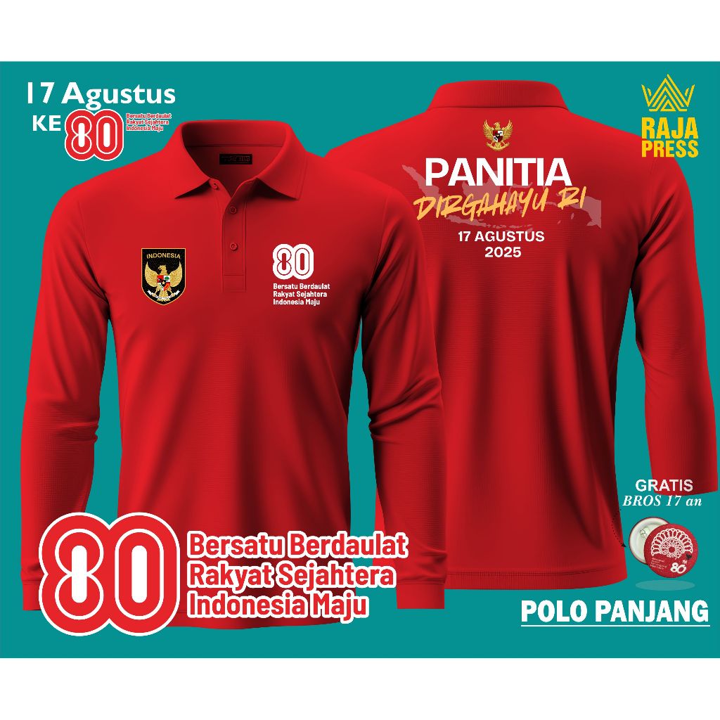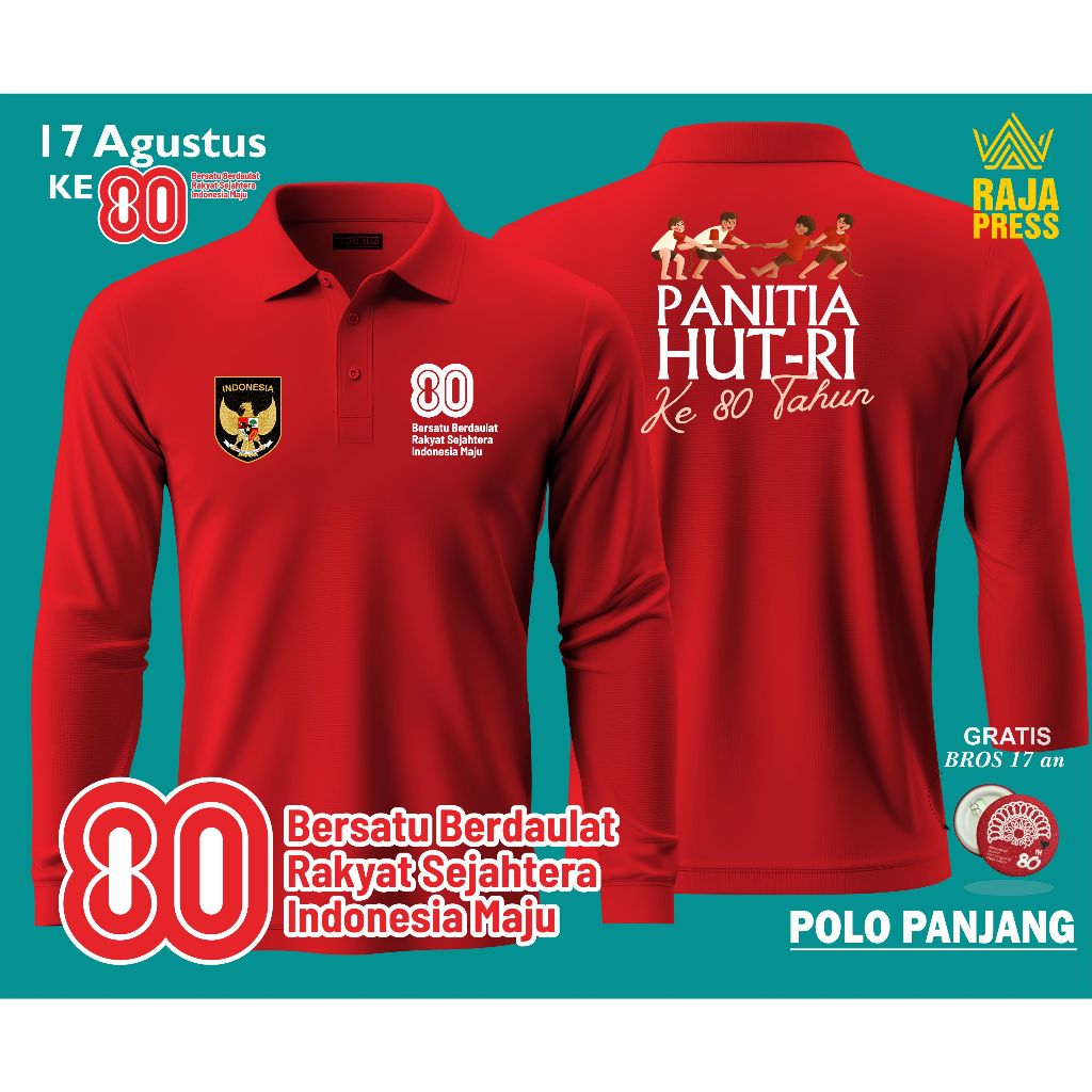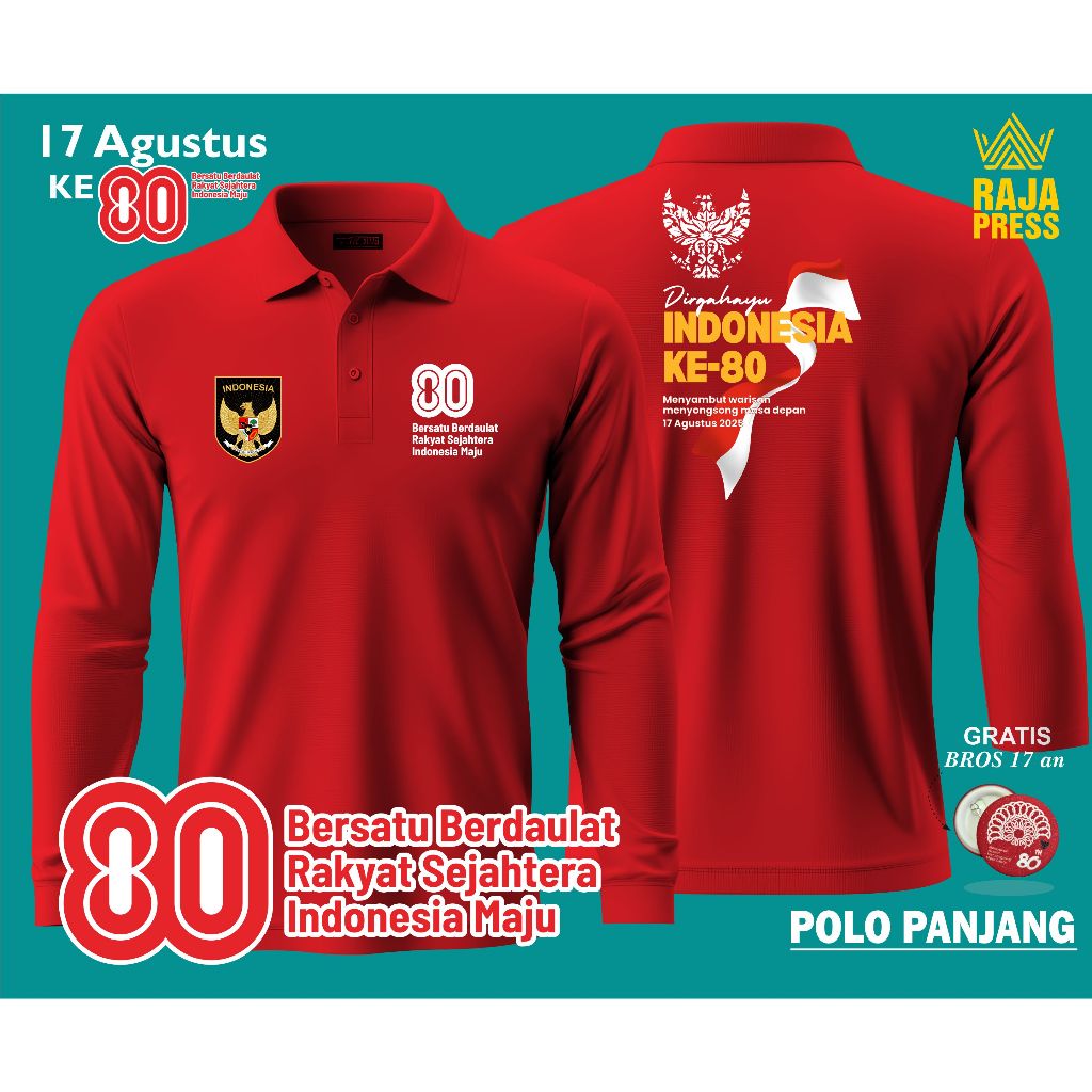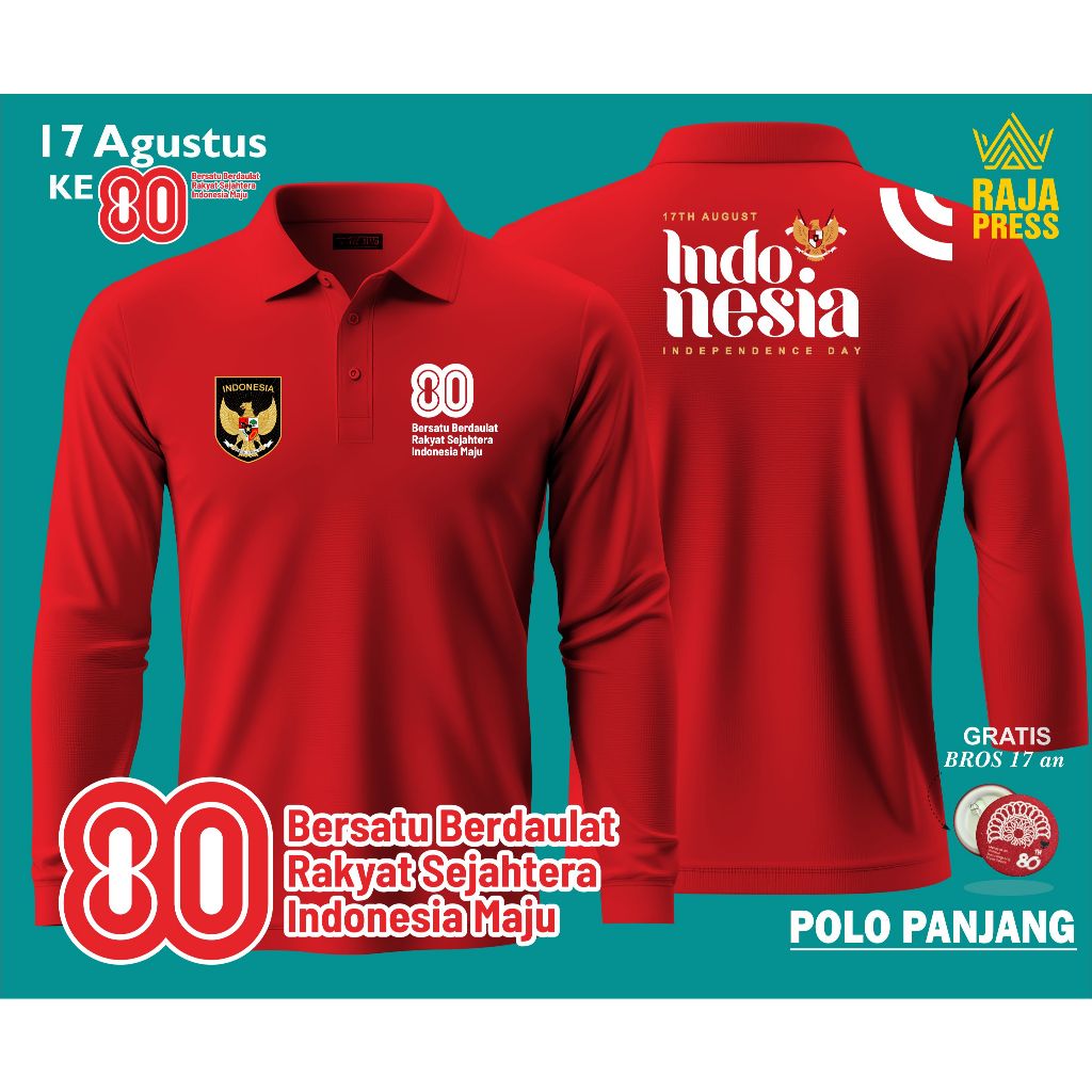 BAJU POLO TSHIRT 17 AGUSTUS HUT REPUBLIK INDONESIA KE-80 2025 DESAIN MERAH PUTIH DEWASA DAN ANAK