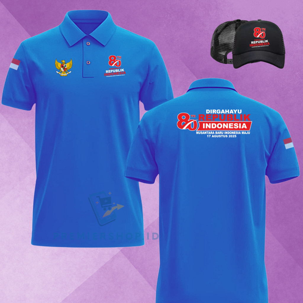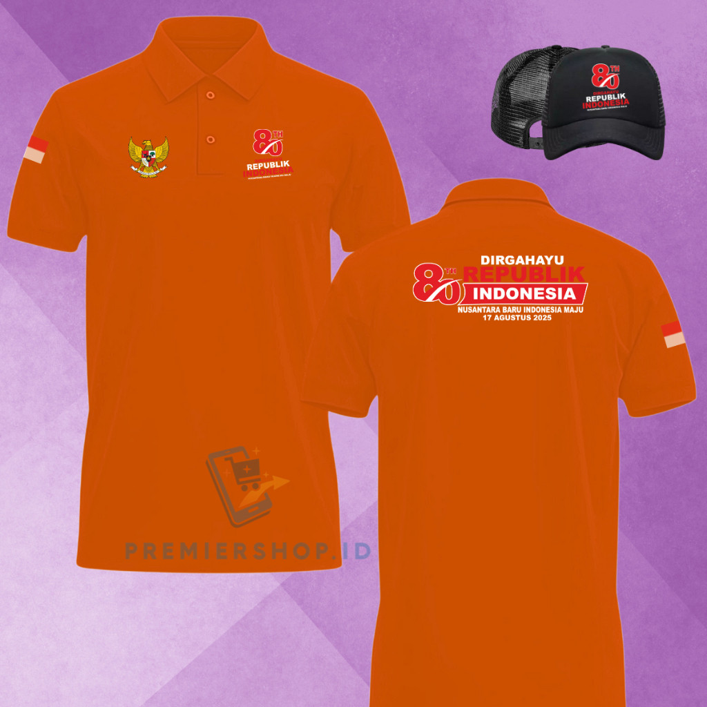 BONUS TOPI Baju Tshirt Poloshirt Shirt T-Shirt Adem Berkerah Seragam Seragaman 17 Agustus 2025 Yang Ke 80 Th Dirgahayu R
