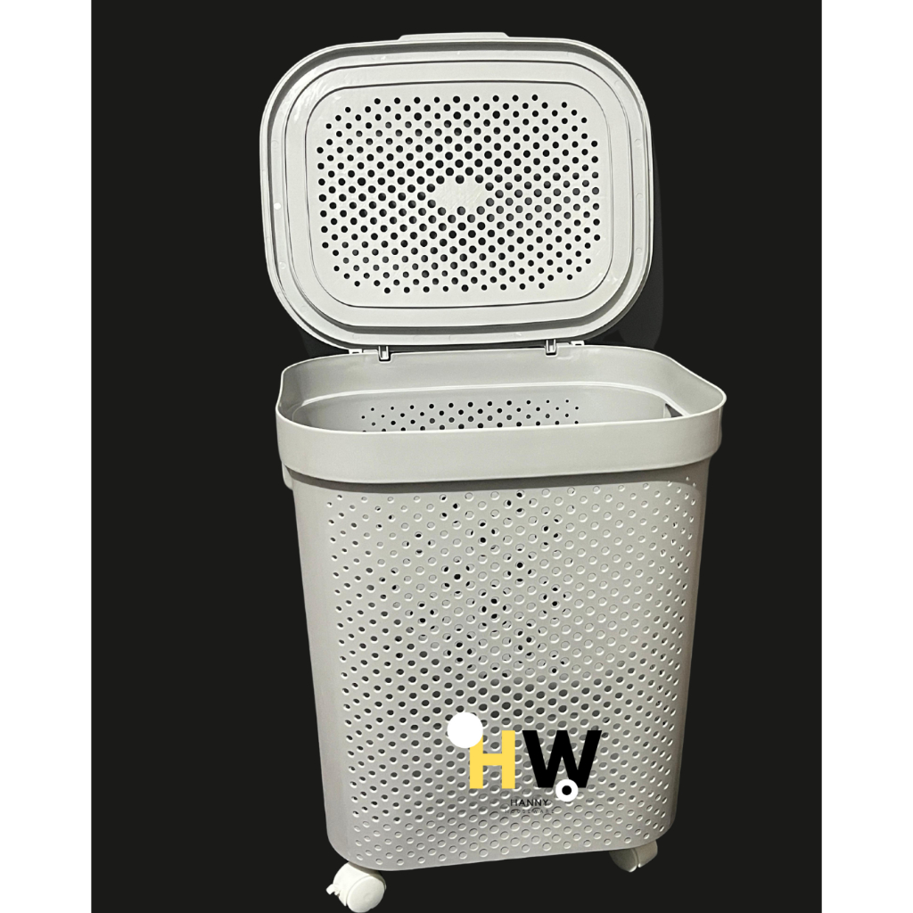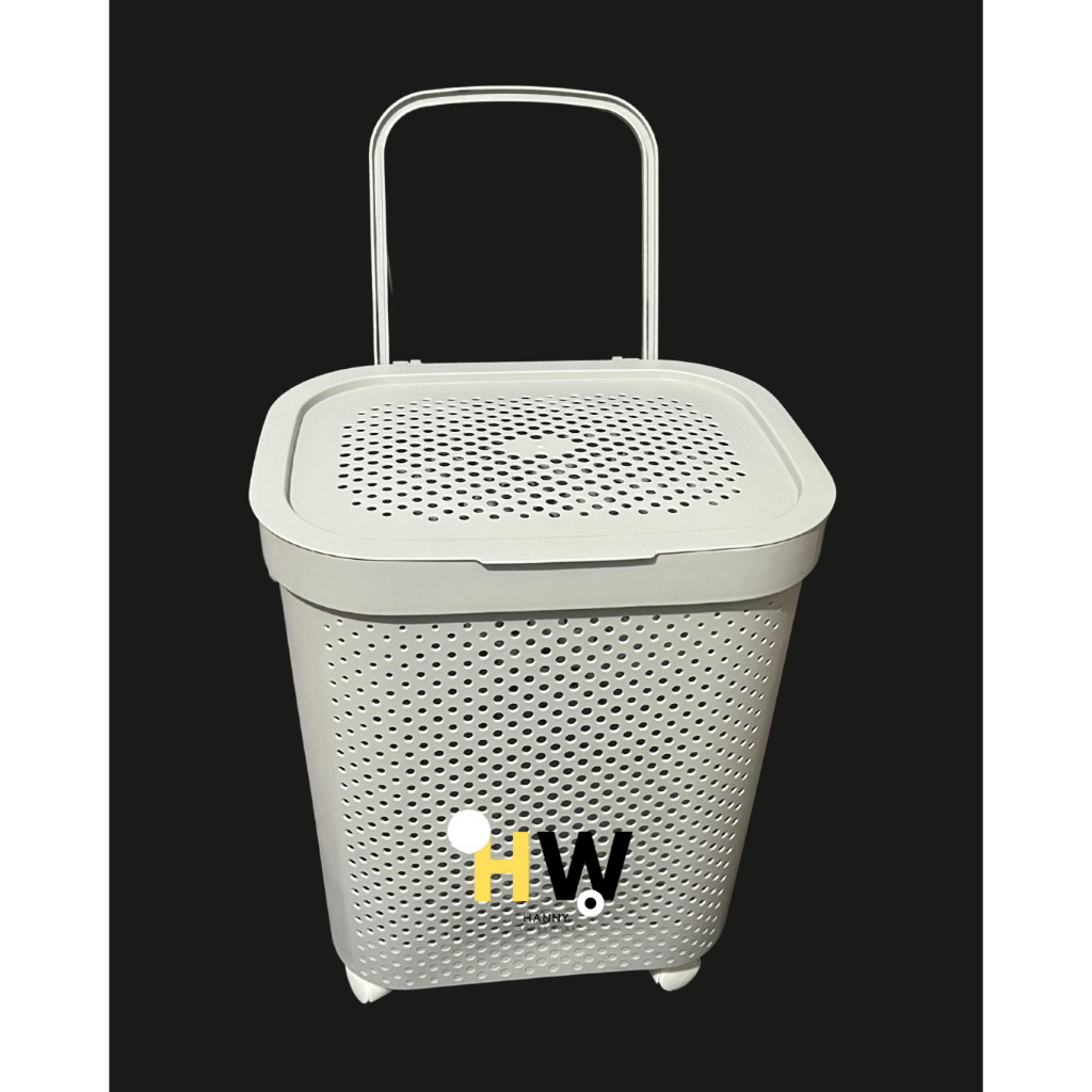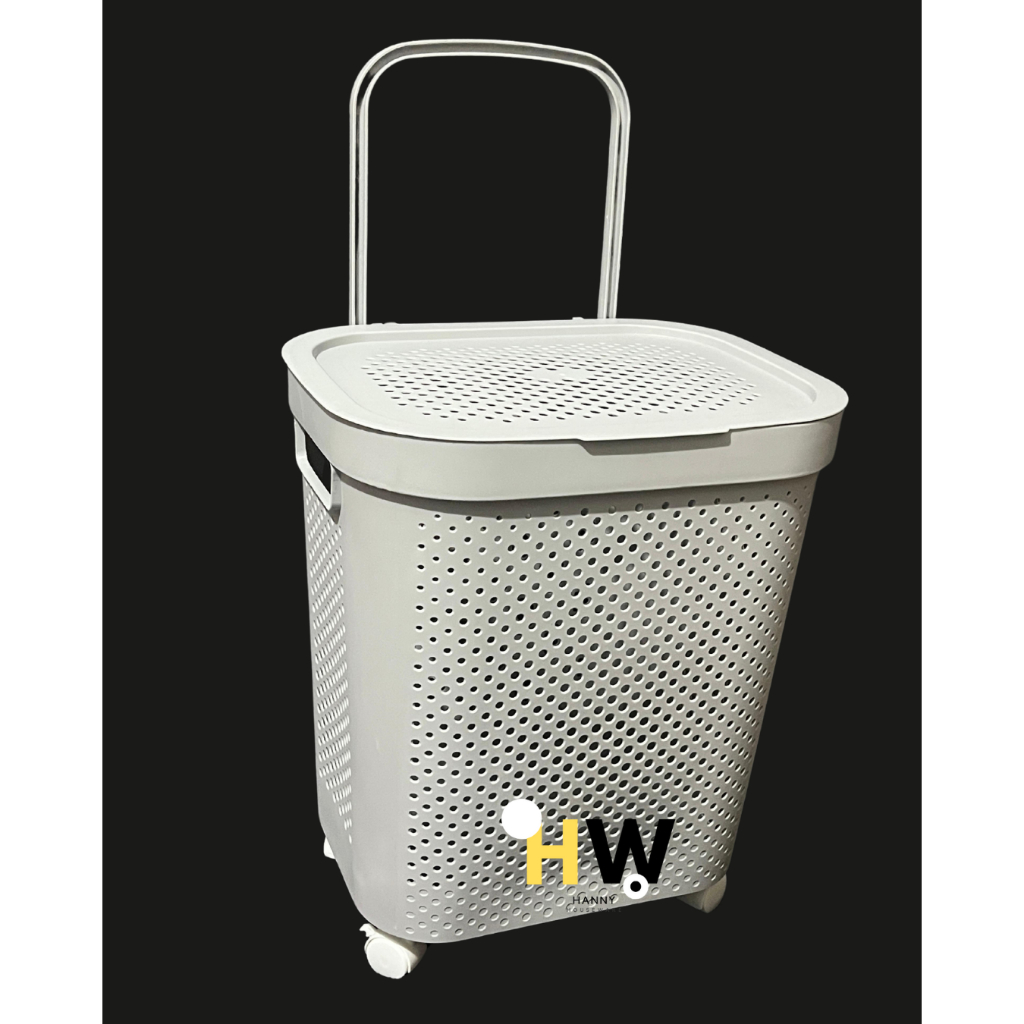 Keranjang Laundry Troley Putih & Silver + Tutup + Roda Keranjang Serbaguna Tempat Baju Kotor / Laundry Bag / Multifungsi