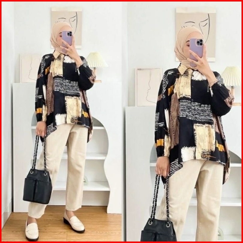 Kemeja Wanita Oversize Rayon Premium Adem Lengan Panjang Kemeja Cewek Kekinian Korean Style Atasan Casual