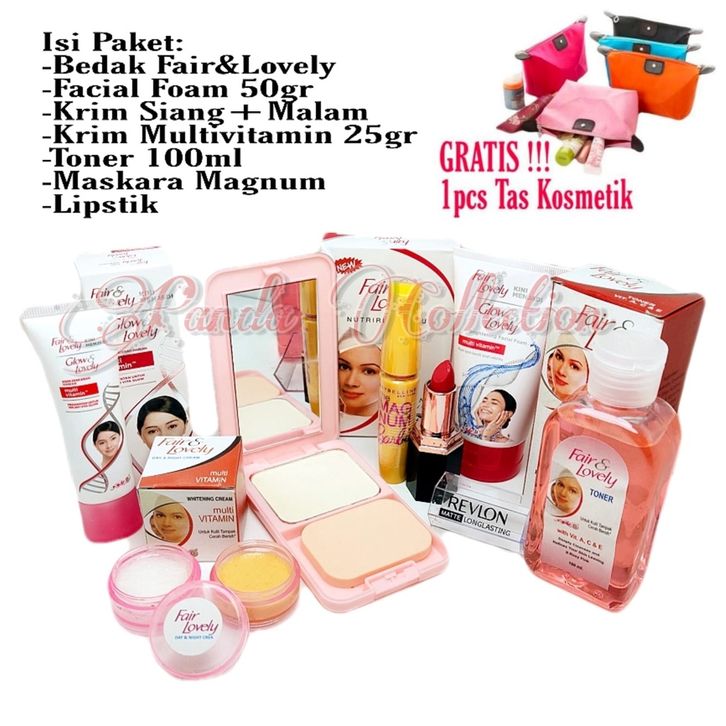 Paket 7in1 Kecantikan Wanita Fair&Lovely FREE Tas Kosmetik/Krim Susun Siang dan Malam+Facial Foam