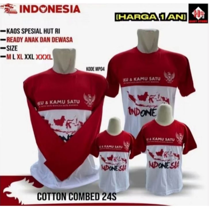 Kaos Merah Putih Special 17 Agustus Seragam agustusan anak dan dewasa bahan Katun lembut Sablon Nyaman Distro Pria