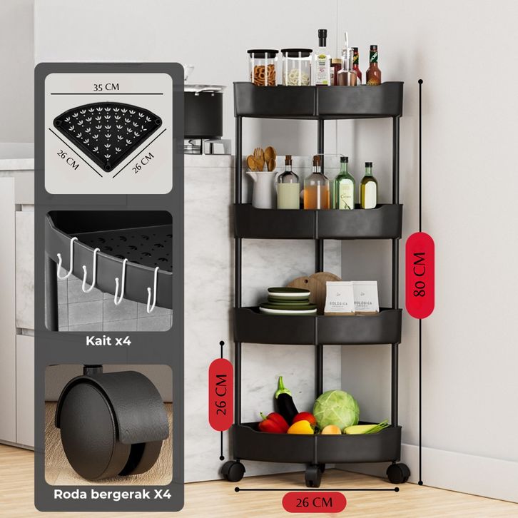 YUMI Rak Sudut Dapur Plastik 4 Susun | Rak Yiyi | Rak Kamar Mandi | Rak Serbaguna