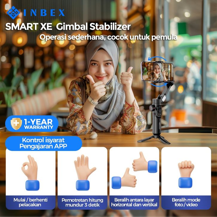 INBEX Smart XE Gimbal - Stabil Cerdas Dudukan Selfie Langsung, 3-, Face Tracking Auto-Inception