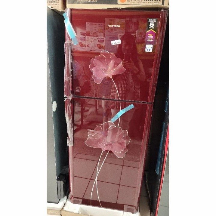 Kulkas 2 Pintu POLYTRON PRM 21 BN R/B Belezza Pintu Kaca 220 Liter Tanpa Bunga Es
