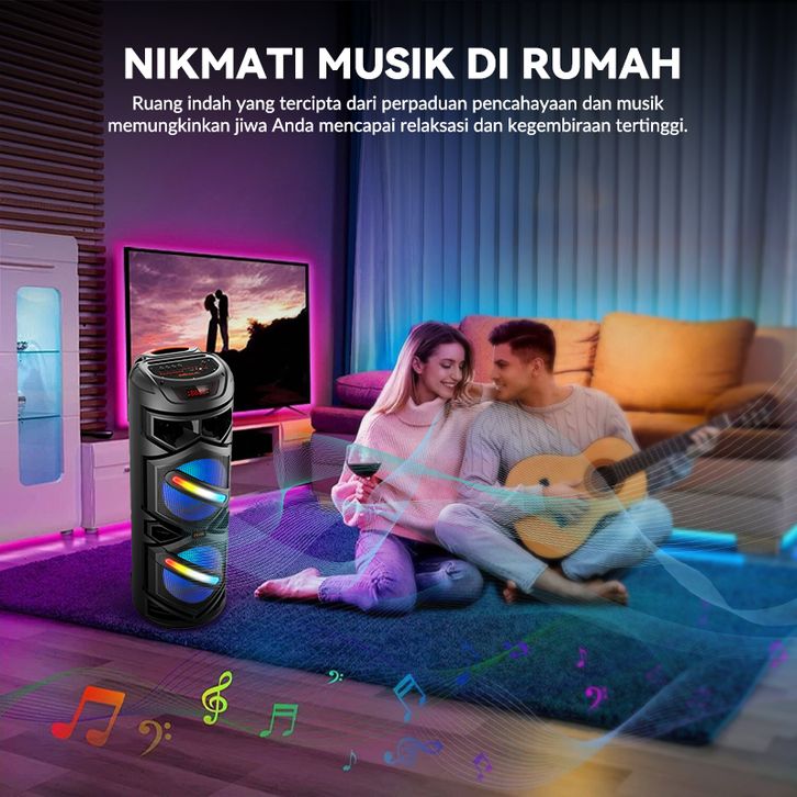 【PREMIUM BASS】PARTY SPEAKER BLUETOOTH KARAOKE BESAR SUPER BASS 8 INCH*2 PROTABLE 2 MIC WIRELESS 8826