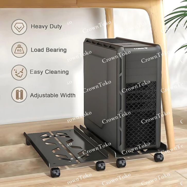 PREMIUM Dudukan CPU Komputer Adjustable 20-26cm Rak CPU Komputer Tray CPU Komputer Dengan Roda Rem QR ucedk