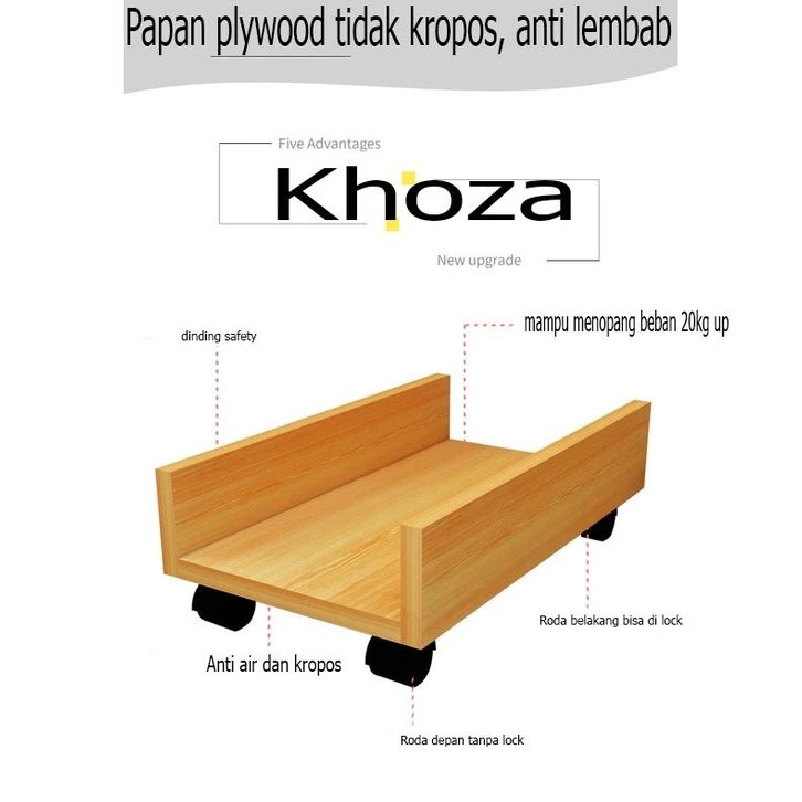 PROMO KHOZA Rak stand CPU Komputer Roda / Tatakan CPU Kayu Anti Air , Dudukan CPU Roda Bisa Geser - Rak Komputer