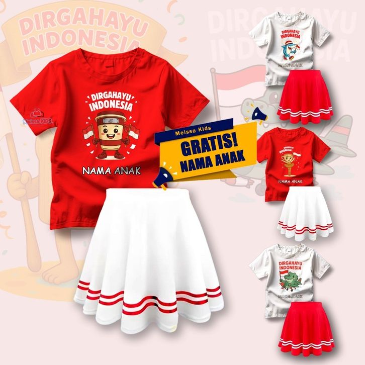 GRATIS ONGKIR [GRATIS NAMA] Meissa Setelan Rok Celana Baru Anak 17 Agustus Cotton Premium