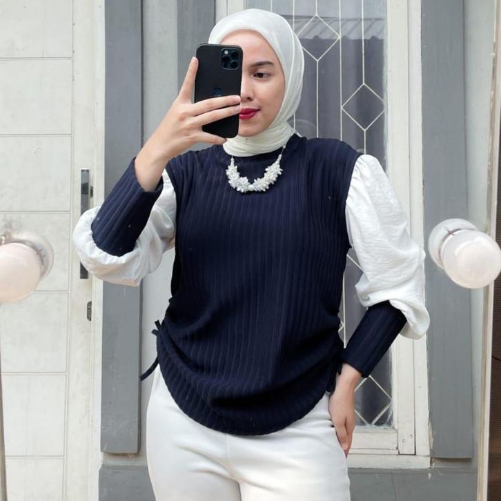 New Atasan Puffy Sleeve Top Blouse Serut Samping Baju Casual Lengan Balon Atasan Wanita Basic Korean Style