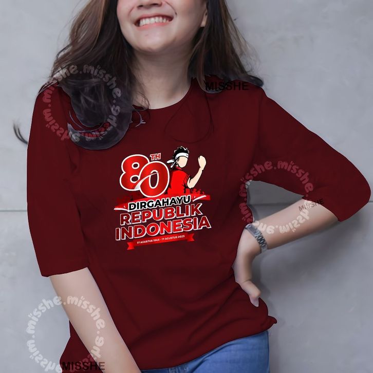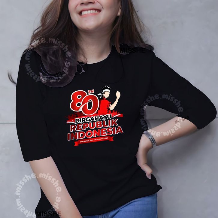 Id - Tshirt Raglan 3/4 Motif Dtf 17 Agustus 2025 Dirgahayu Indonesia Merdeka 80Th / Kaos Katun Wanita / Baju Kaos