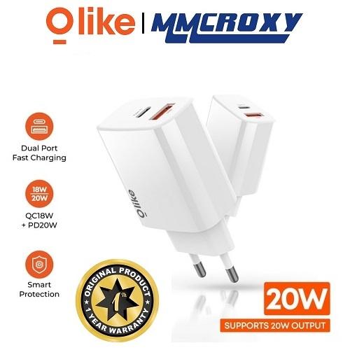 Olike C400 Adapter Charger Dual Port USB-A USB-C QC 18W PD 20W