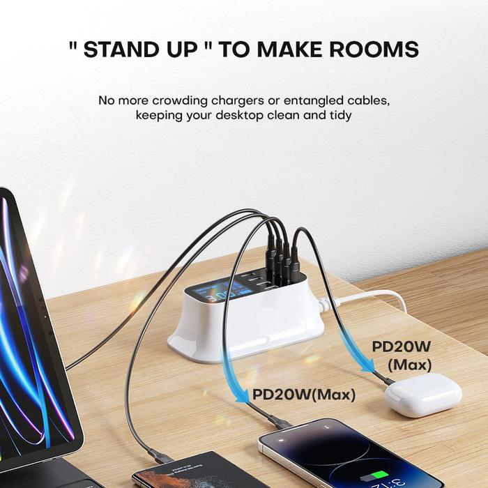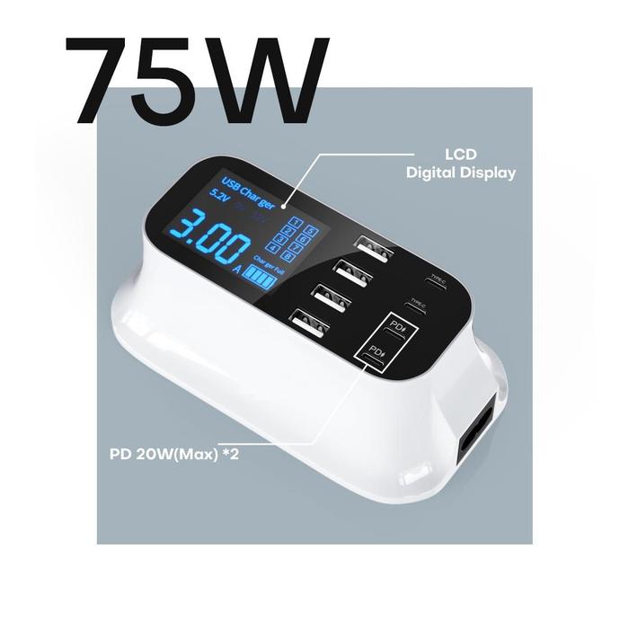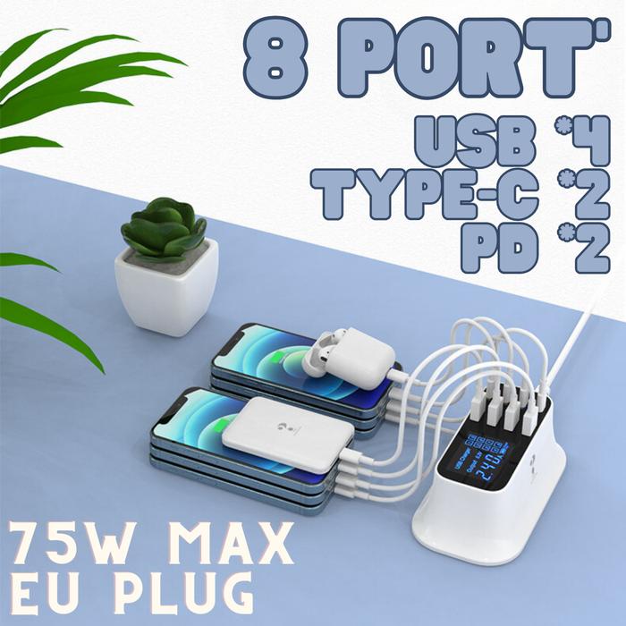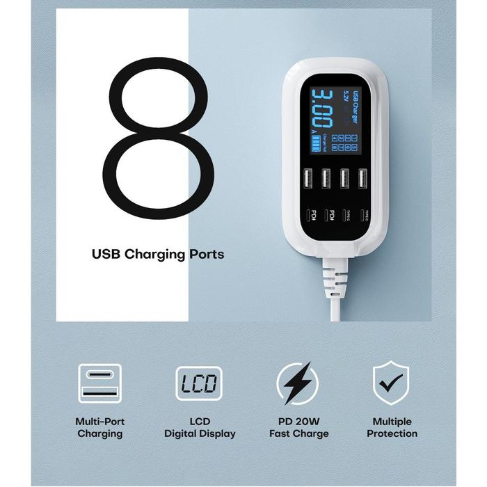 TRIPLEDI Charger Adapter 8 Port CDA19Q Fast Charging USB A 2.4 Type C Adaptor Travel QC3.0 PD 20W