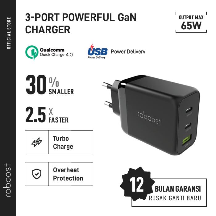 roboost Kepala Charger GaN Technology 65W Fast Charging PD QC 4.0+ 3.0 AFP FCP Adaptor