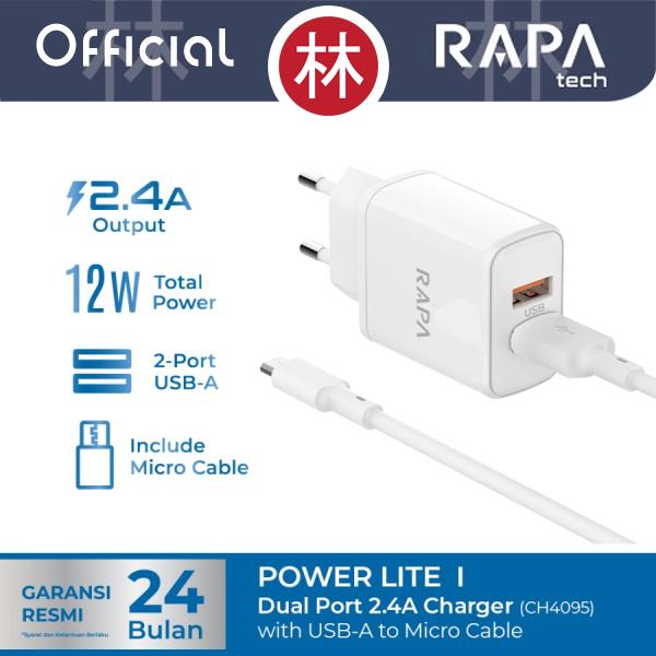 RAPAtech CH4095 POWER LITE I Dual Port 2.4A Charger + A to Micro Cable