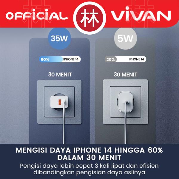 VIVAN Power 35 GaN PD QC 4A 35W USB-C USB-A Dual Port Quick Charger