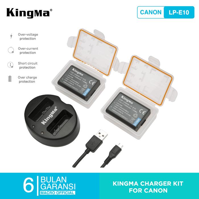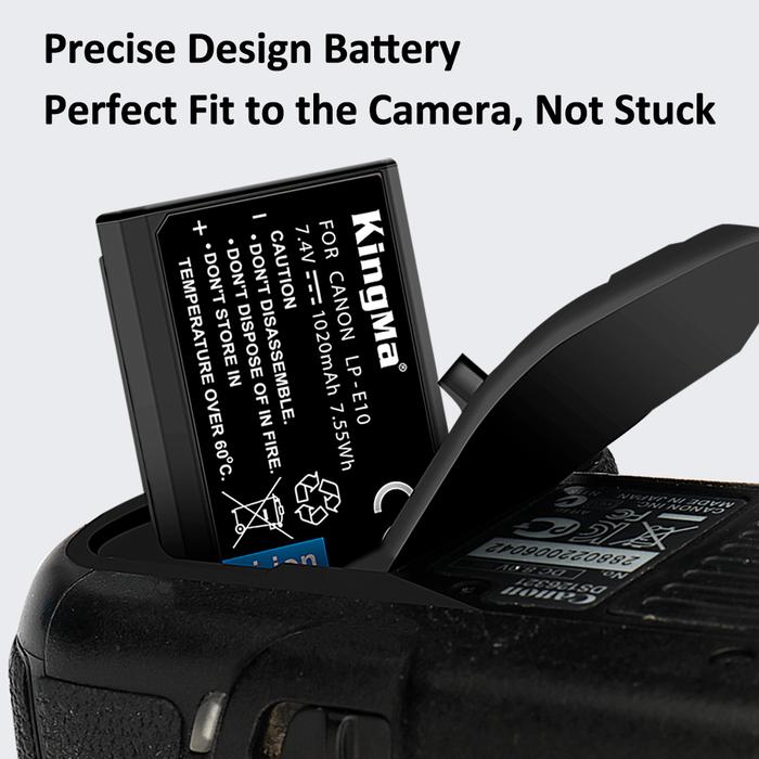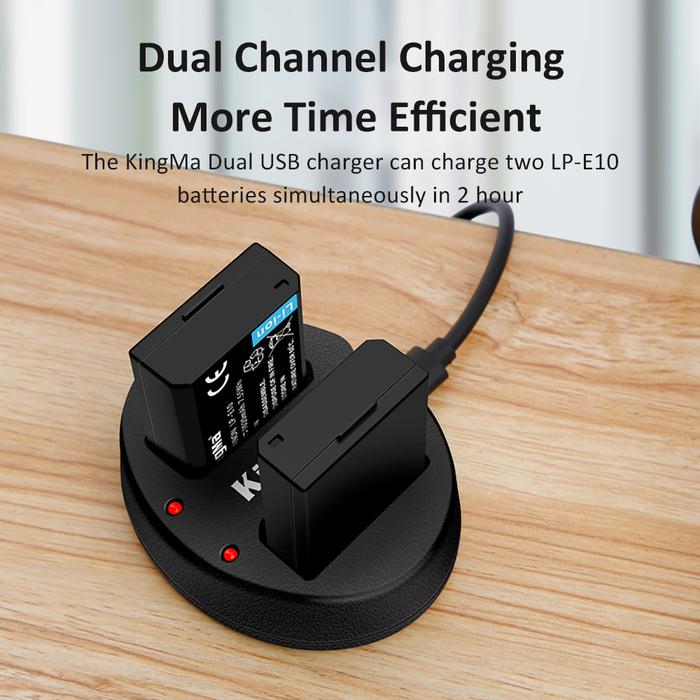 KINGMA Battery Canon LP-E10 2-Pack with 2-Slot Charger - Led Indicator