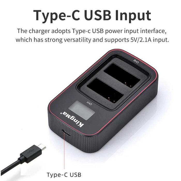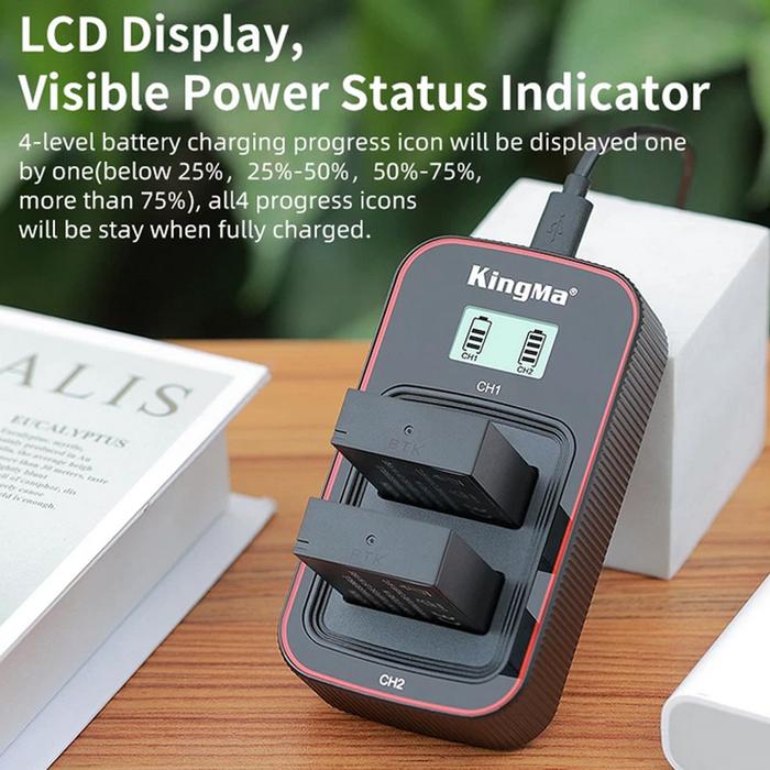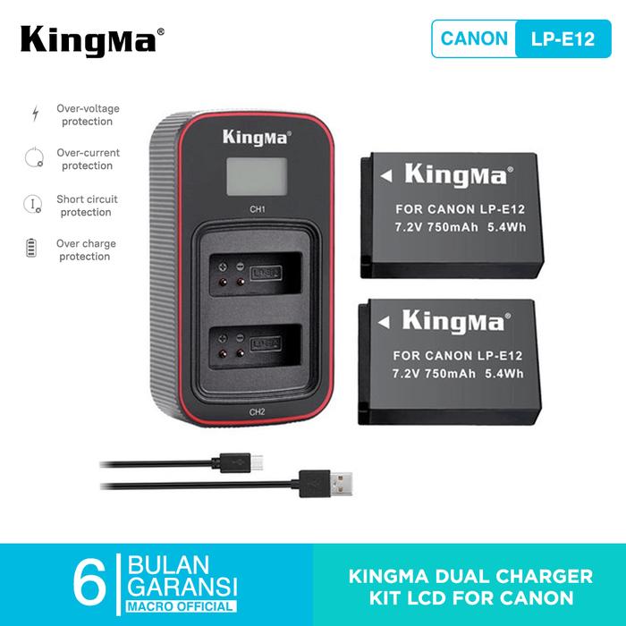 KINGMA Battery Canon LP-E12 2-Pack with 2-Slot Charger - Lcd Display