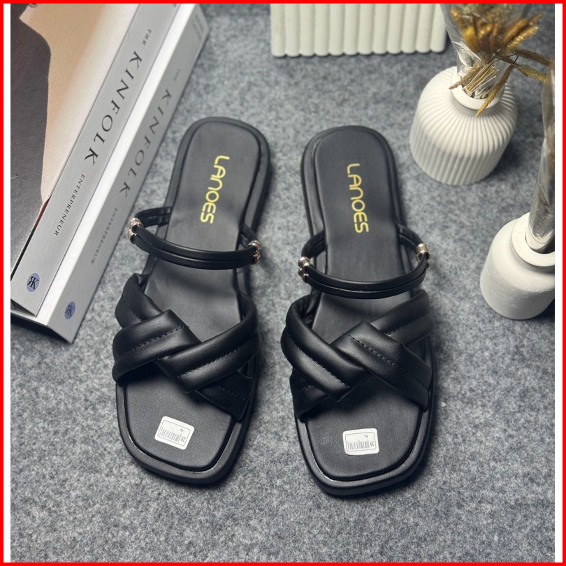 Lanoes Sandal Platform Wanita Korean Style Silang Tali Belakang Anti Slip Terbaru Kekinian 2025