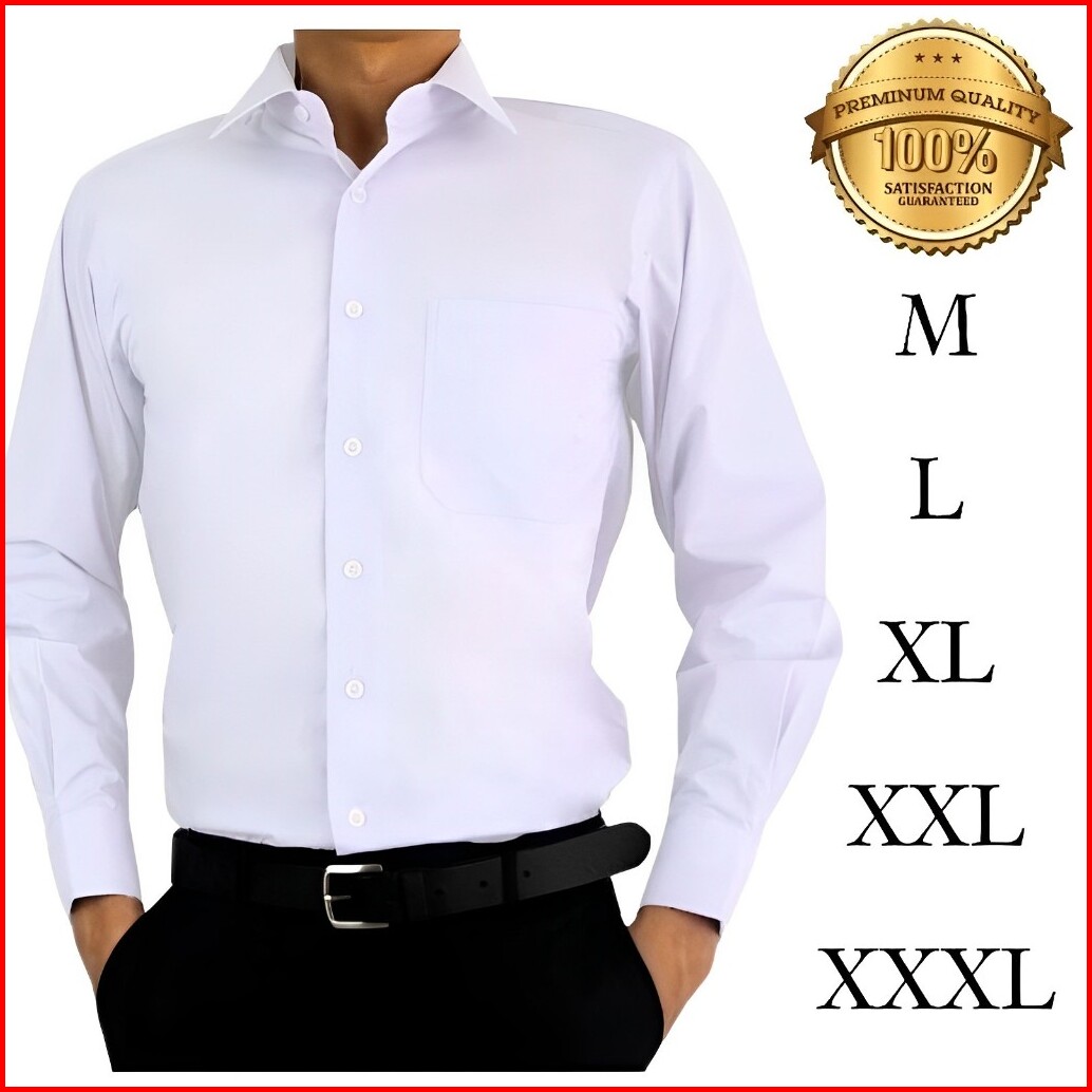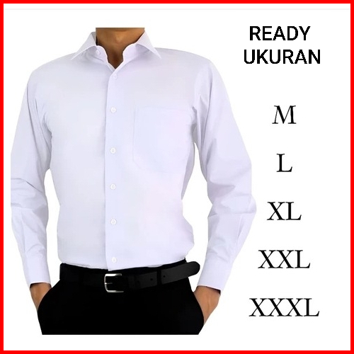 Promo Kemeja Putih Polos Pria Slimfit Kemeja Formal Polos Putih Hitam Pria Dewasa Lengan Panjang Warna Lengkap