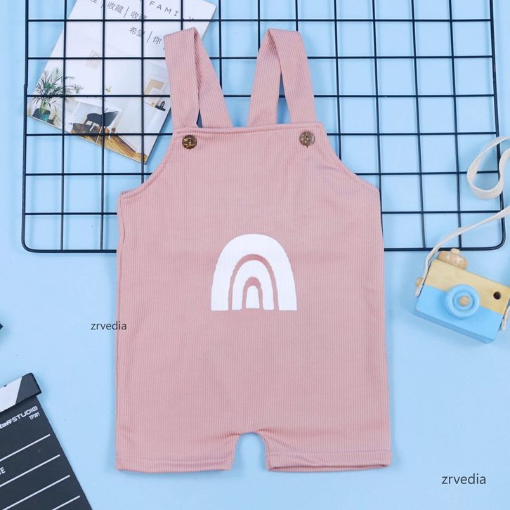 Baju Kodok Anak Perempuan KNIT Overall Rainbee Laki Perempuan uk Bayi 3 Tahun Baju Kodok Bahan Katun Rib Korea