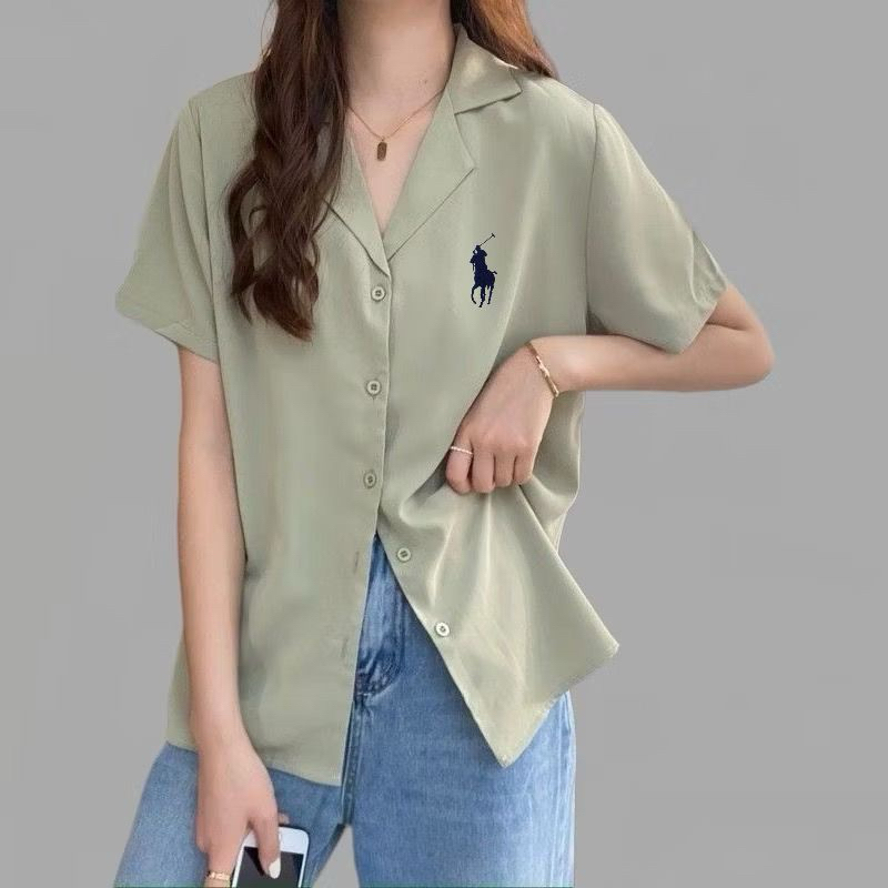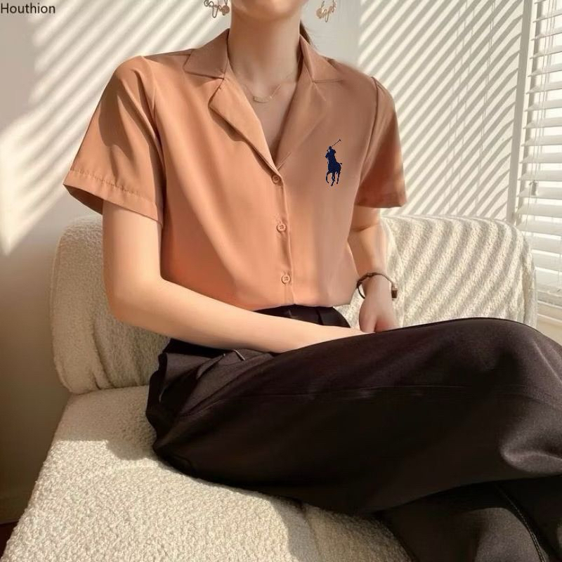 Kemeja Polos Logo Samping Lengan Pendek / Kemeja Kasual Wanita / Kemeja Kerja