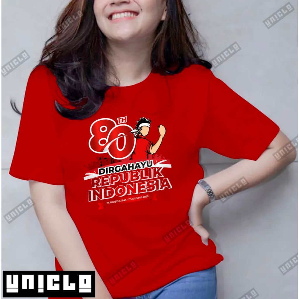 Kaos 17 Agustus Hut 80Th Pria/Wanita Cotton Combed 24S Lengan Pendek / Printed 17 Agustus #001