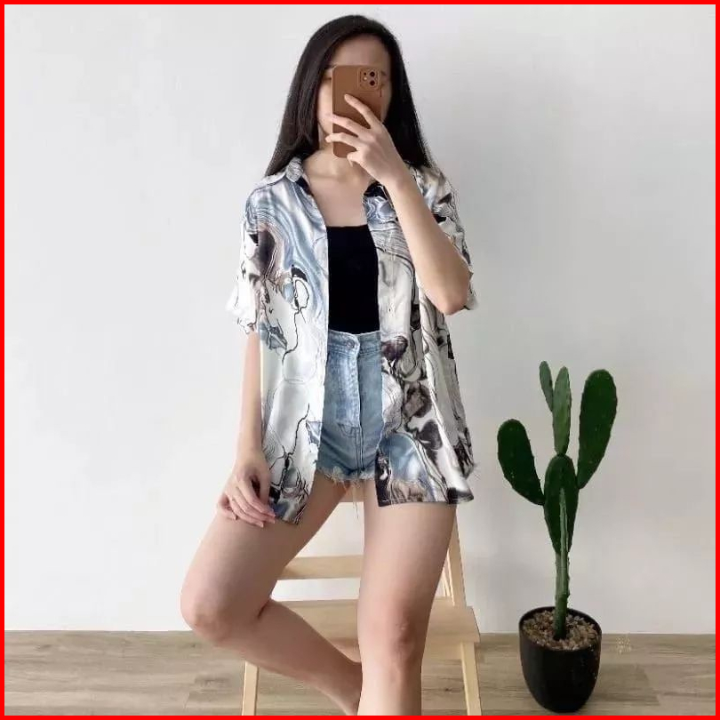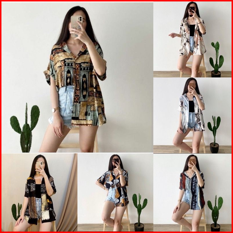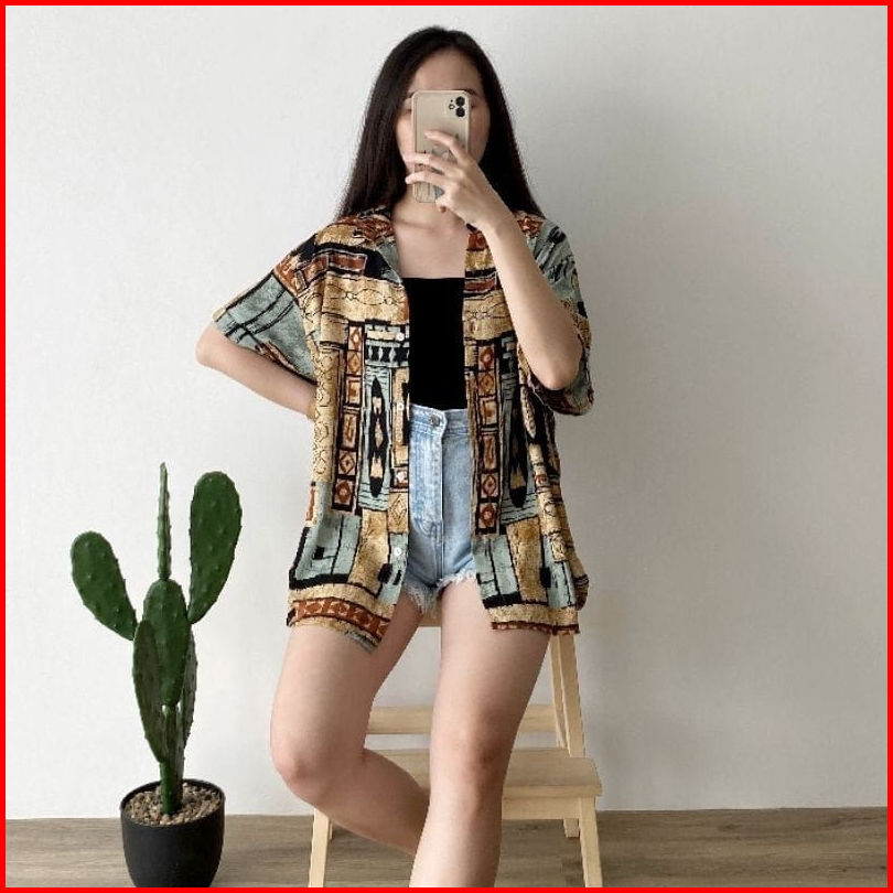 Kemeja Wanita Hawai L Kemeja Pantai Abstrak Casual Retro Bahan Rayon