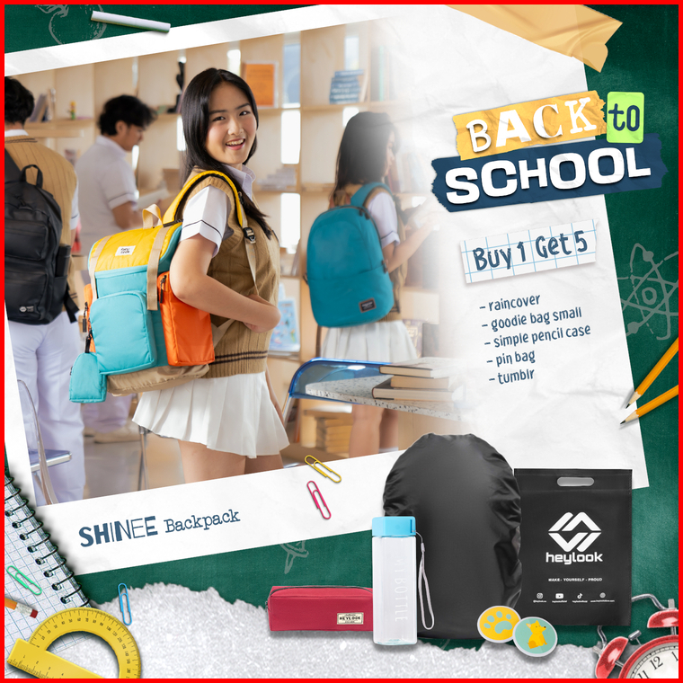 Heylook - Paket Hemat Junior Tas Ransel Shinee Tas Backpack Punggung Wanita Cewek Tas Sekolah Perempuan Tas Kuliah Tas L