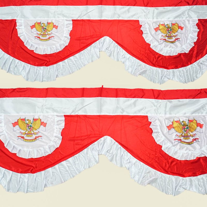 Bendera Merah Putih Backdrop Rumbai Garuda 10 Meter tinggi 75cm 10 Gelombang