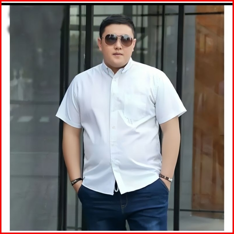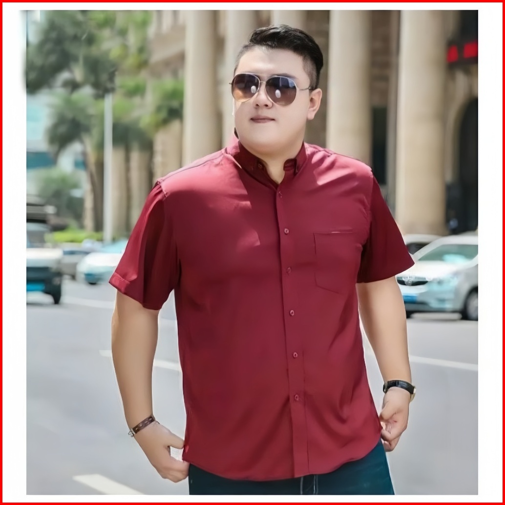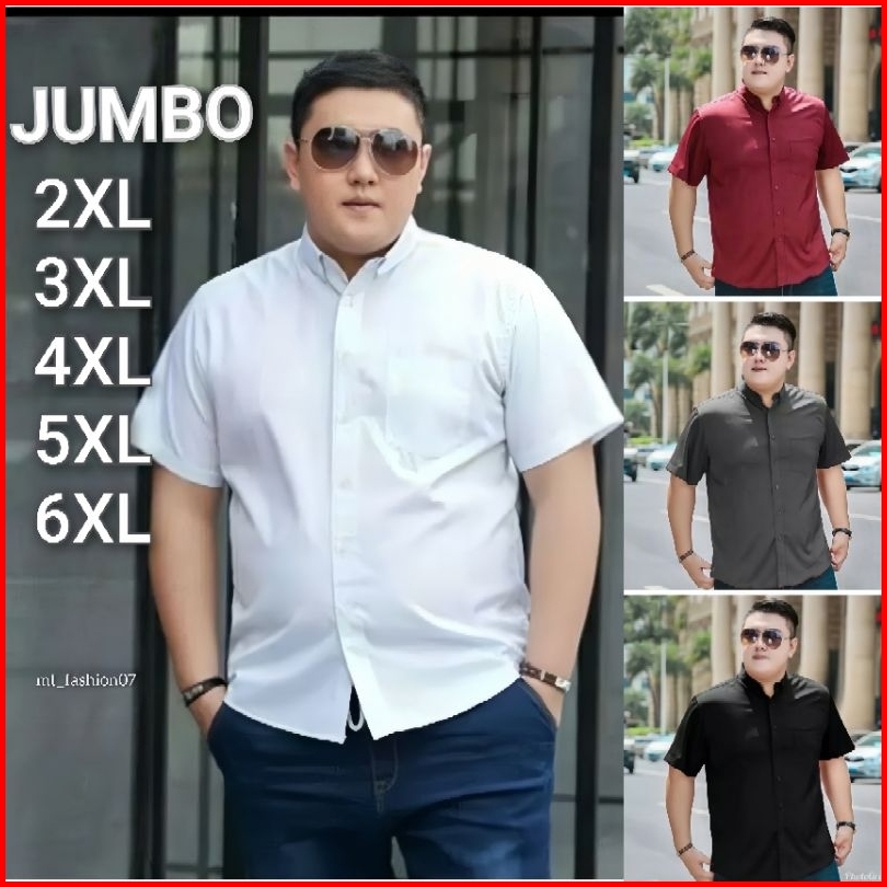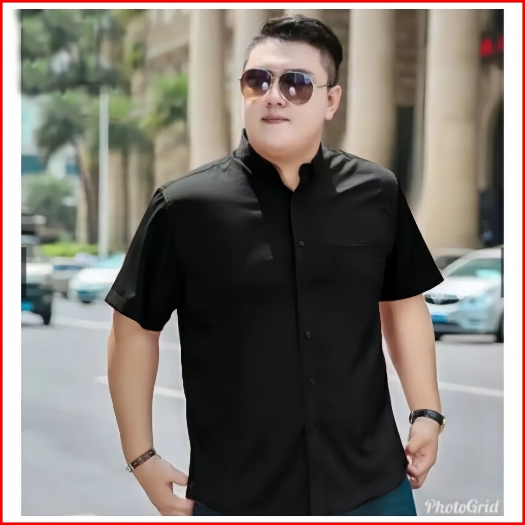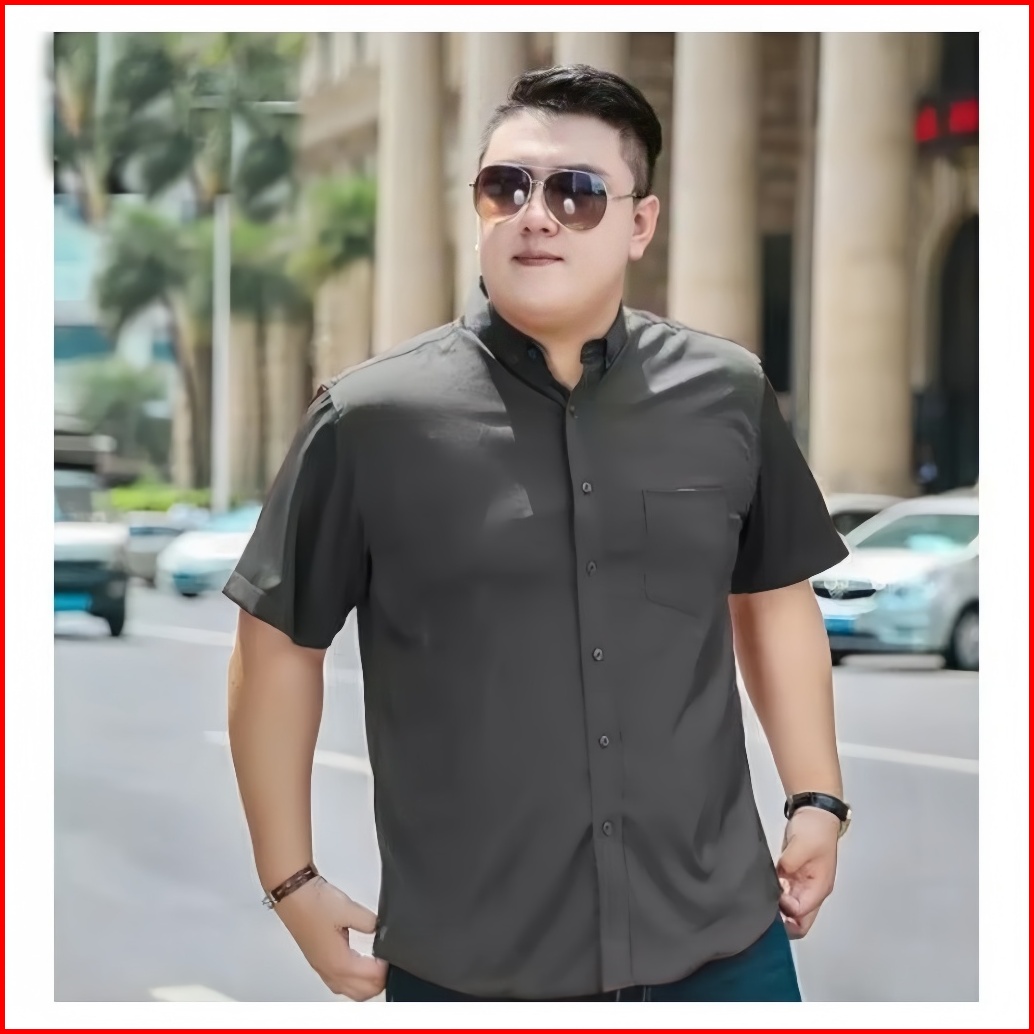 Big Size Jumbo Kemeja Pria Polos Pendek Kemeja Kasual Lengan Pendek