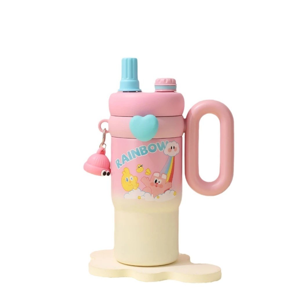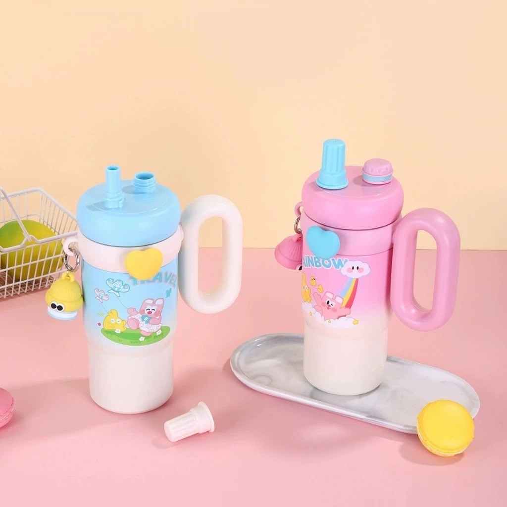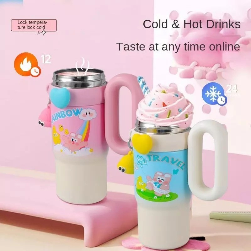 [M.C] Tumbler Handle Cartoon Doll Aesthetic 850ml / Thermos Cup Jumbo Stainless Steel Vacuum Termos Gagang Estetik Tahan