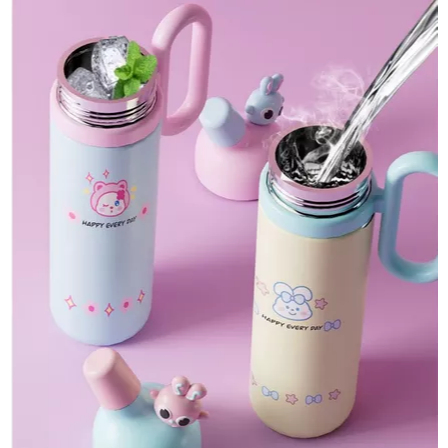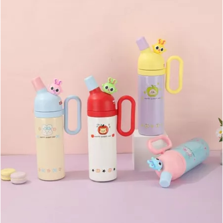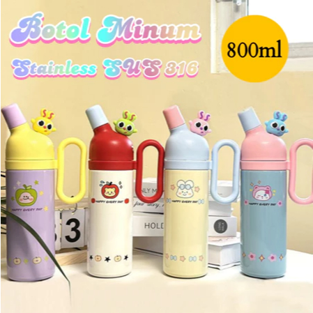 Tumbler Minum Stainless Steel 316 Termos Viral Lucu Happy Every Day Portable Vacuum Cup Dengan Gagang 800ml 2031