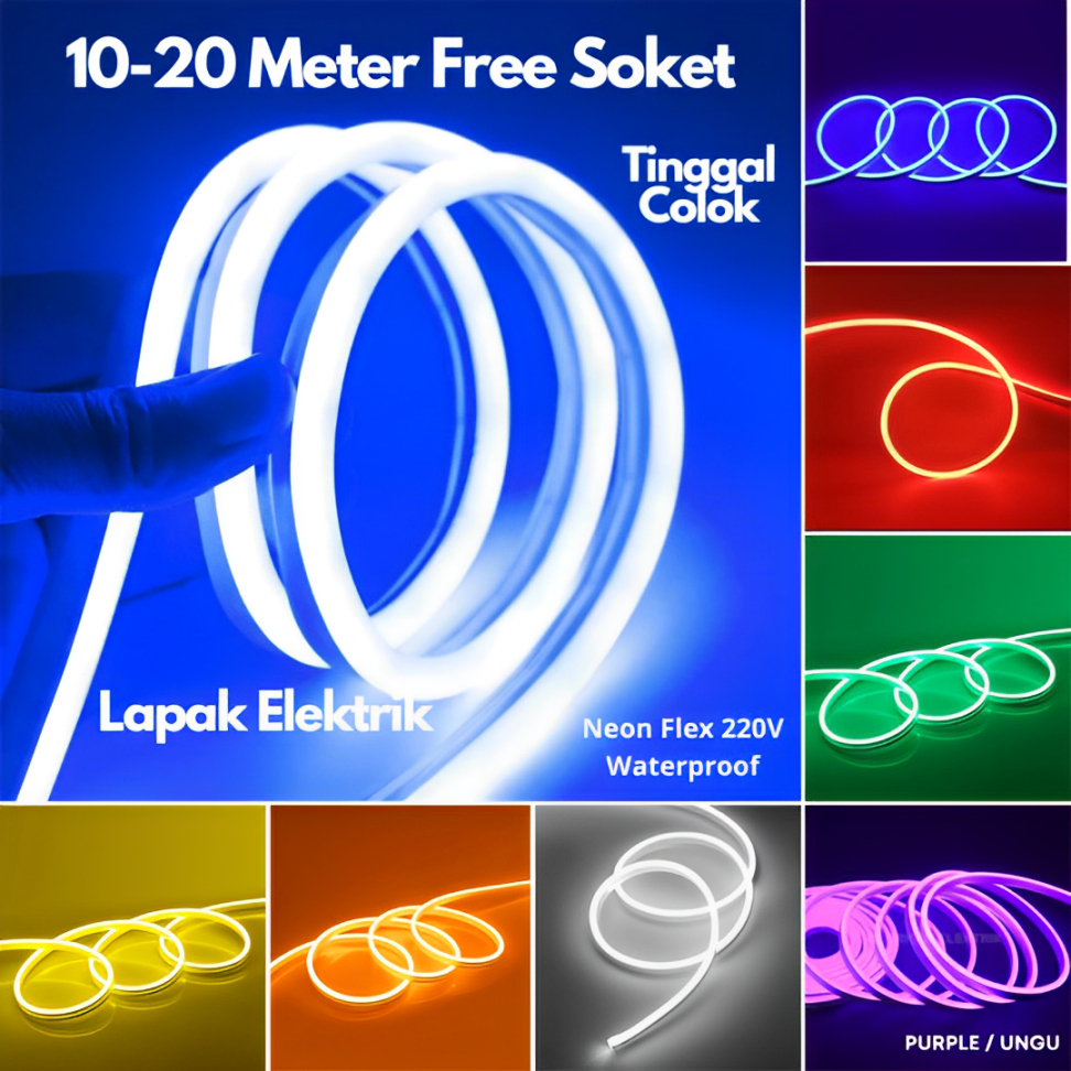 Lampu Led Neon Flex 10 - 20 Meter kamar Aesthetic Tempel Dinding Dekorasi Rumah Konten Free Socket