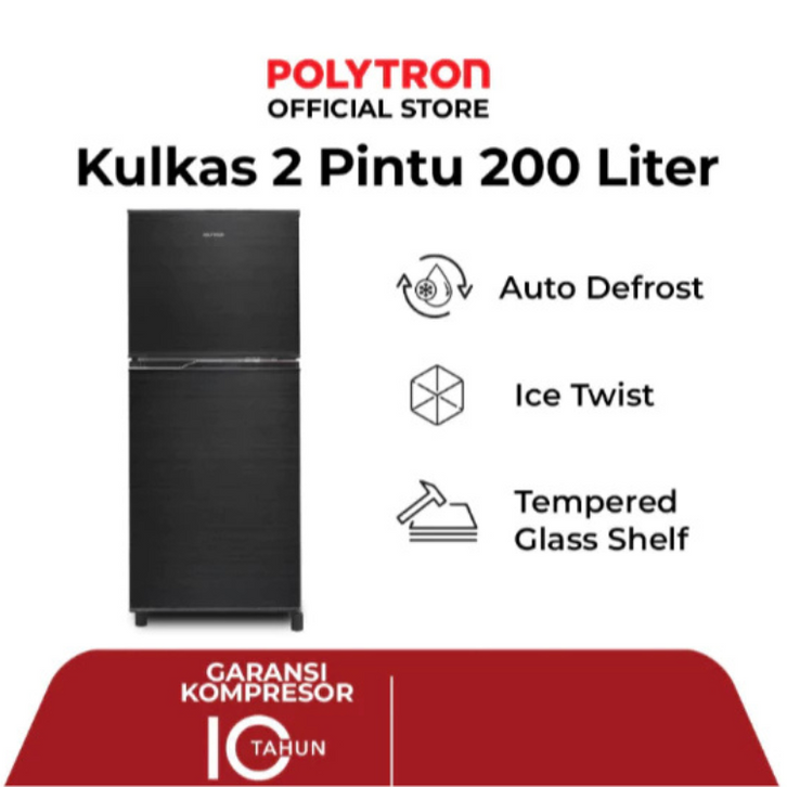 KULKAS POLYTRON 2 PINTU PRB 200Y 200R LEMARI ES KAPASITAS 200 LITER 100 WATT TERBARU TANPA BUNGA ES MURAH