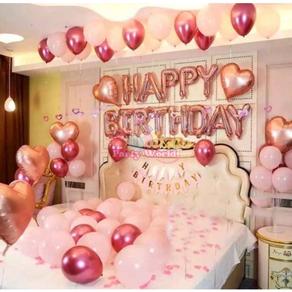 Paket Dekorasi Birthday Pink Rosegold Chrome