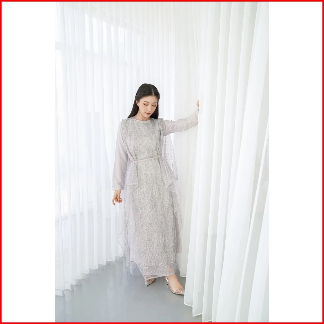 Florence Dress Pesta Gamis Brukat Premium Kombinasi Tulle Dot Dress Remaja Dewasa Wanita Kekinian