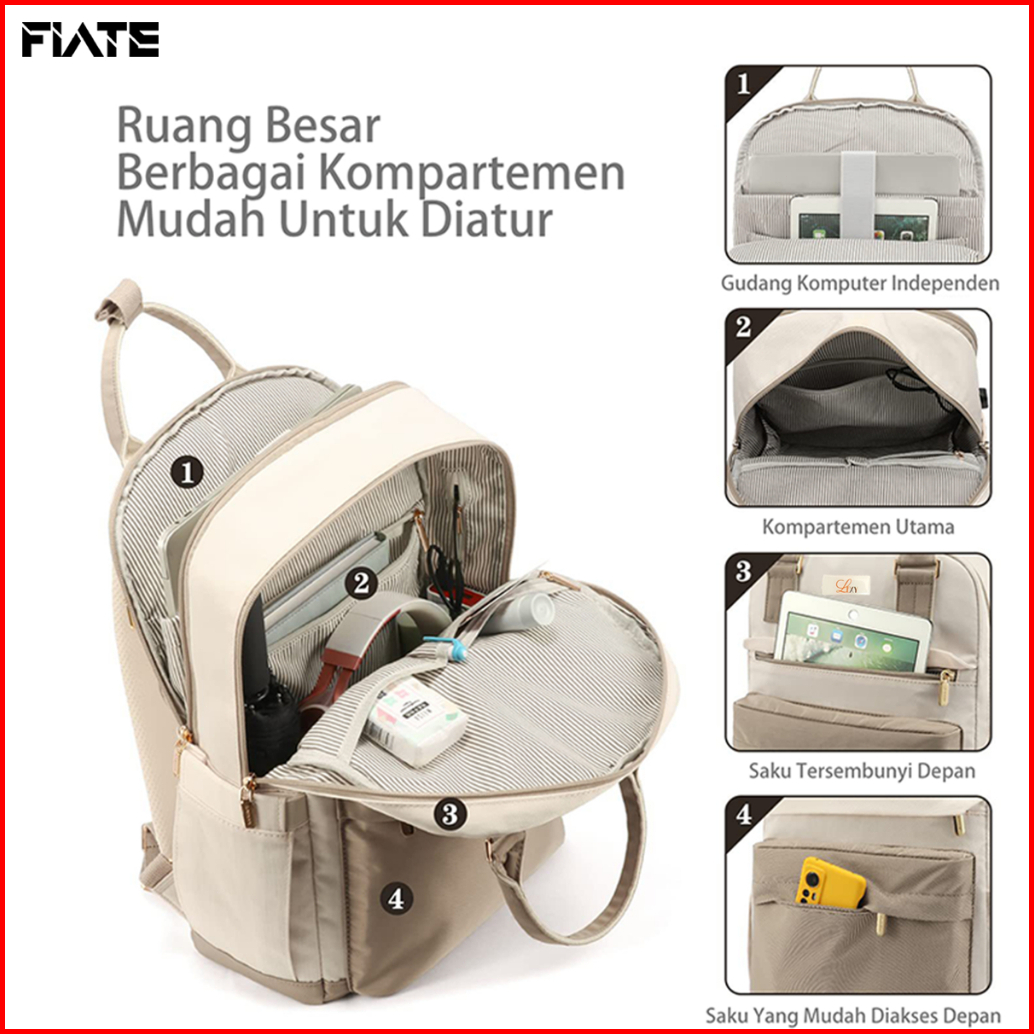 Flate Tas Ransel Wanita Tas Sekolah Fashion Korean Style Tahan Air Tas Ransel Laptop 16 Inch