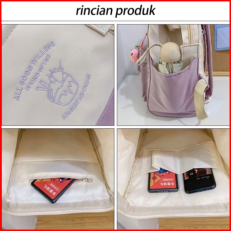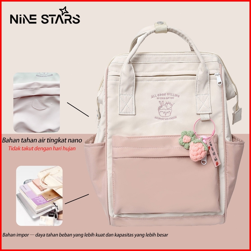 Nine Stars Warna Macaron Tas Ransel Wanita Ori Korea Tas Sekolah Anak Perempuan Kapasitas Besar