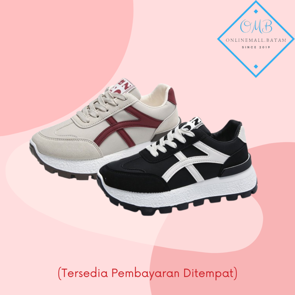Onlinemall Sepatu sneakers wanita kekinian bahan kulit PU Premium 328