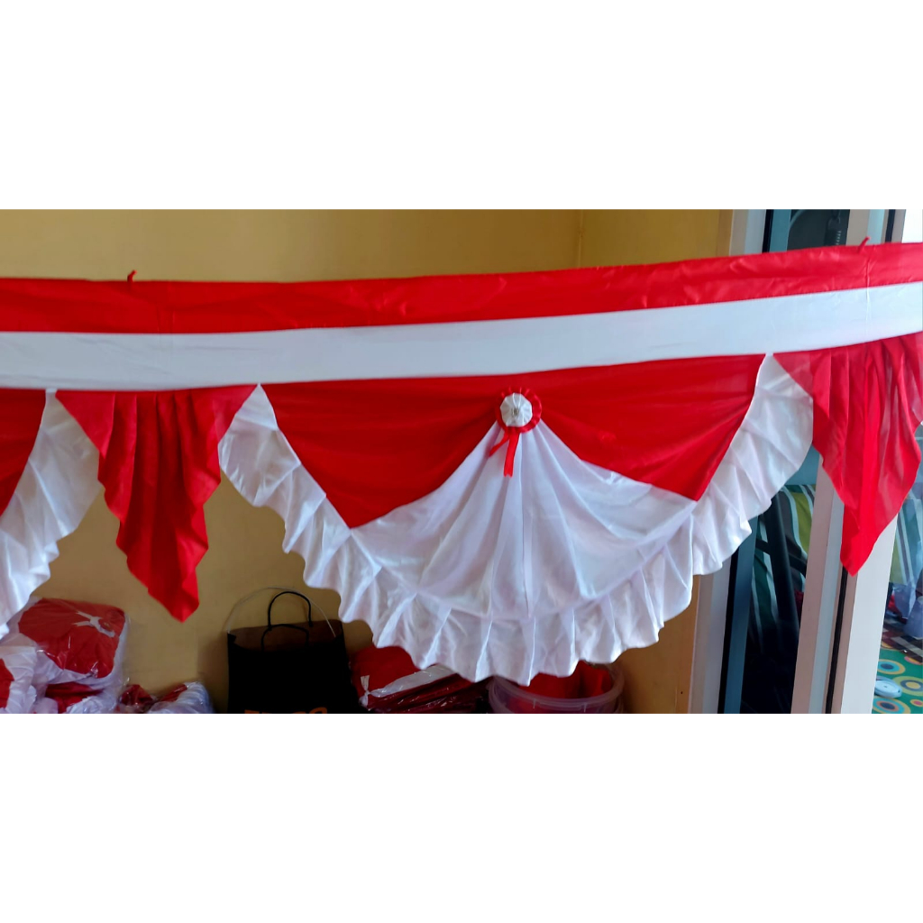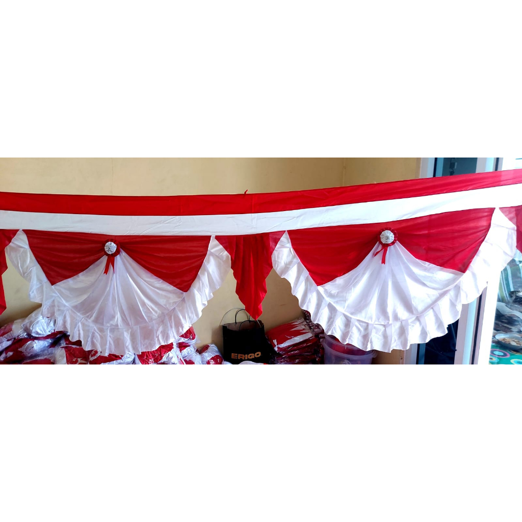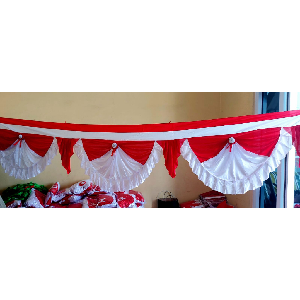 Bendera Merah Putih Backdrop Rumbai segitiga 10 meter tinggi 75cm 10 gelombang
