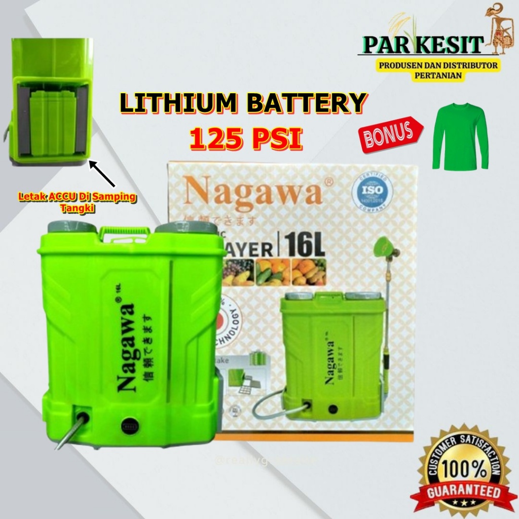 Sprayer Elektrik Nagawa 16 Liter 125 PSI Battery Lithium Tangki Semprot Hama Bonus Kaos
