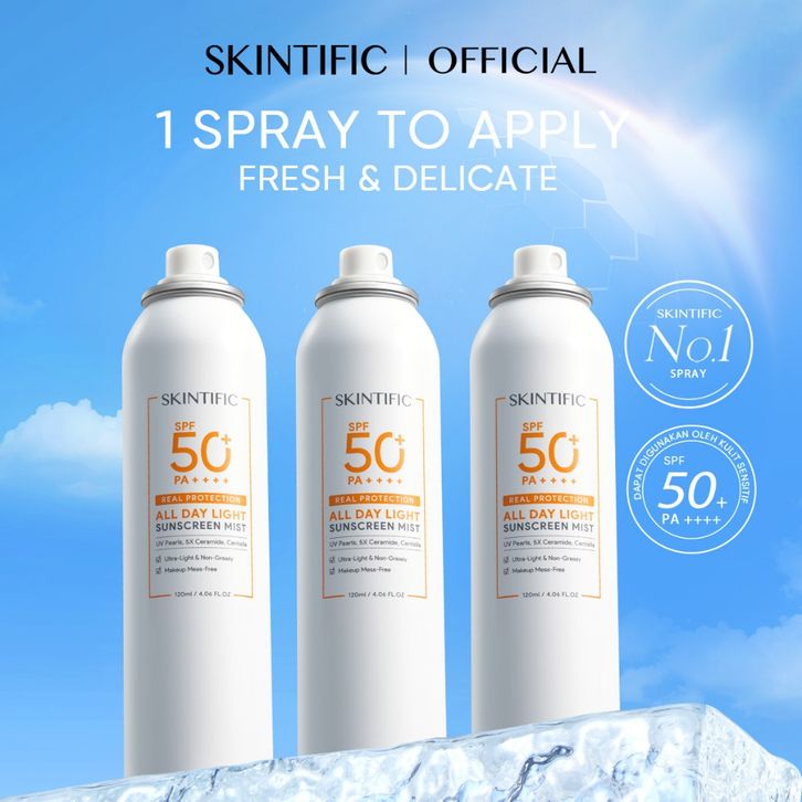 SKINTIFIC - All Day Light Sunscreen Mist SPF 50 PA++++ 120ml | Sunscreen Spray UV Mist Tone Up Sun Shield