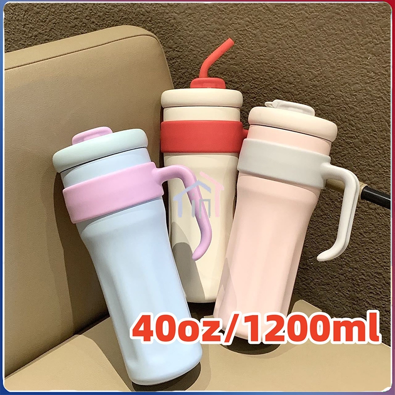 【】1200ml Simple Modern Tumbler Stainless / Gagang Tumbler Premium Jumbo Steel 40oz 1200ML Tahan Panas/Tahan Dingin 1.2L