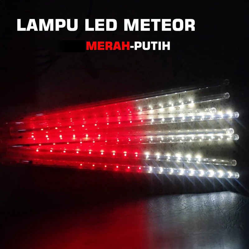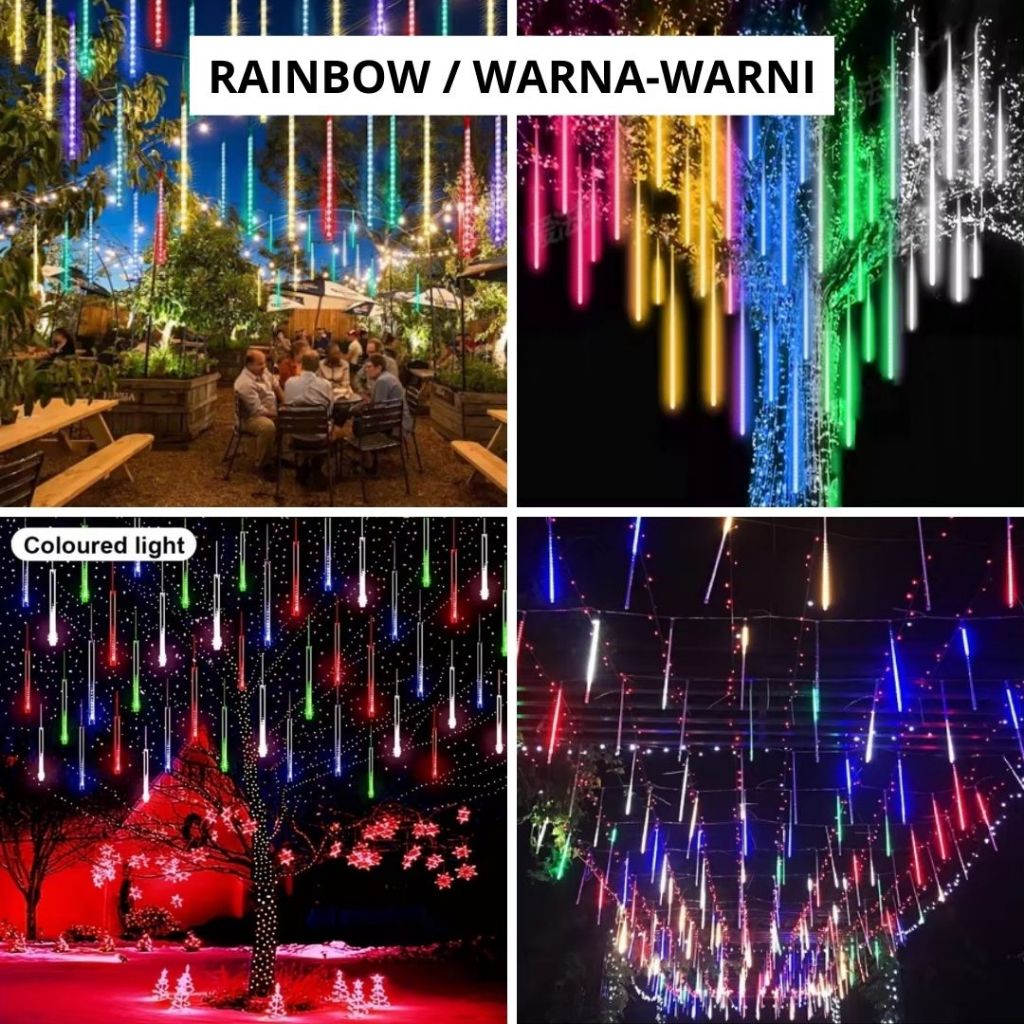 Lampu Meteor LED Hujan 50cm RGB MERAH PUTIH RAINBOW WARNA WARNI BIRU WARMWHITE KUNING 1 set 8 Batang 10 Batang