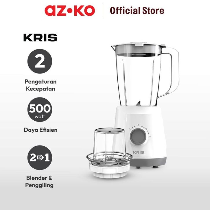 AZKO Kris 1.5 ltr Blender Dengan9rinder 500 watt - Putih Pembuat Jus Penggiling Pemotong Penghalus Elektronik Dapur