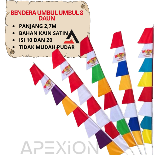 APEXION Bendera Umbul Umbul Merah Putih dan Warna Warni Ukuran 2,7 isi 10 Dan 20