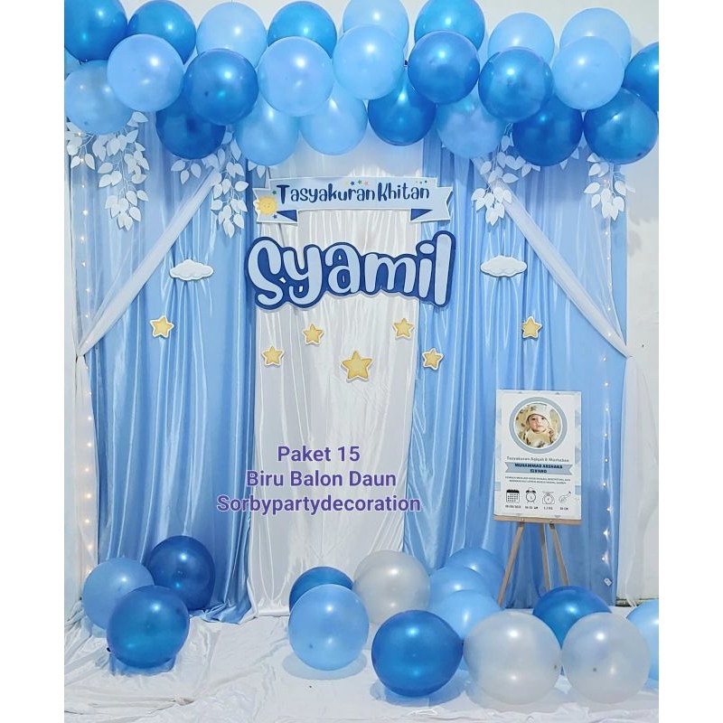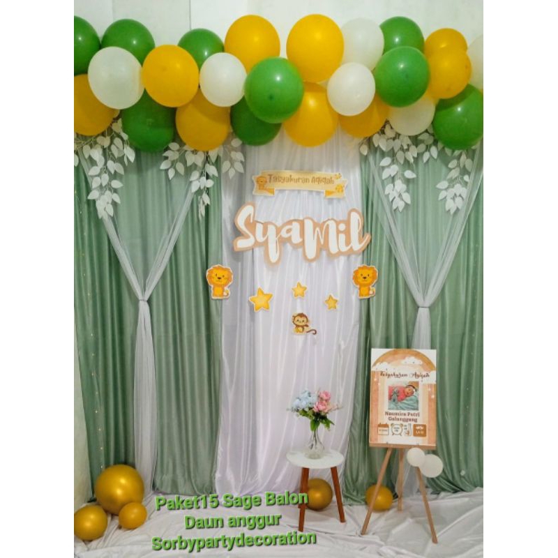 Paket Dekorasi Aqiqah backdrop background khitan Ultah tedak siten (015) balon daun